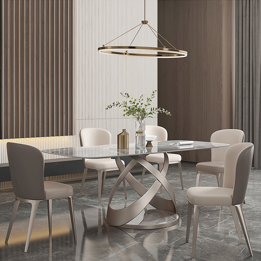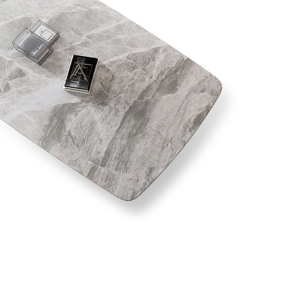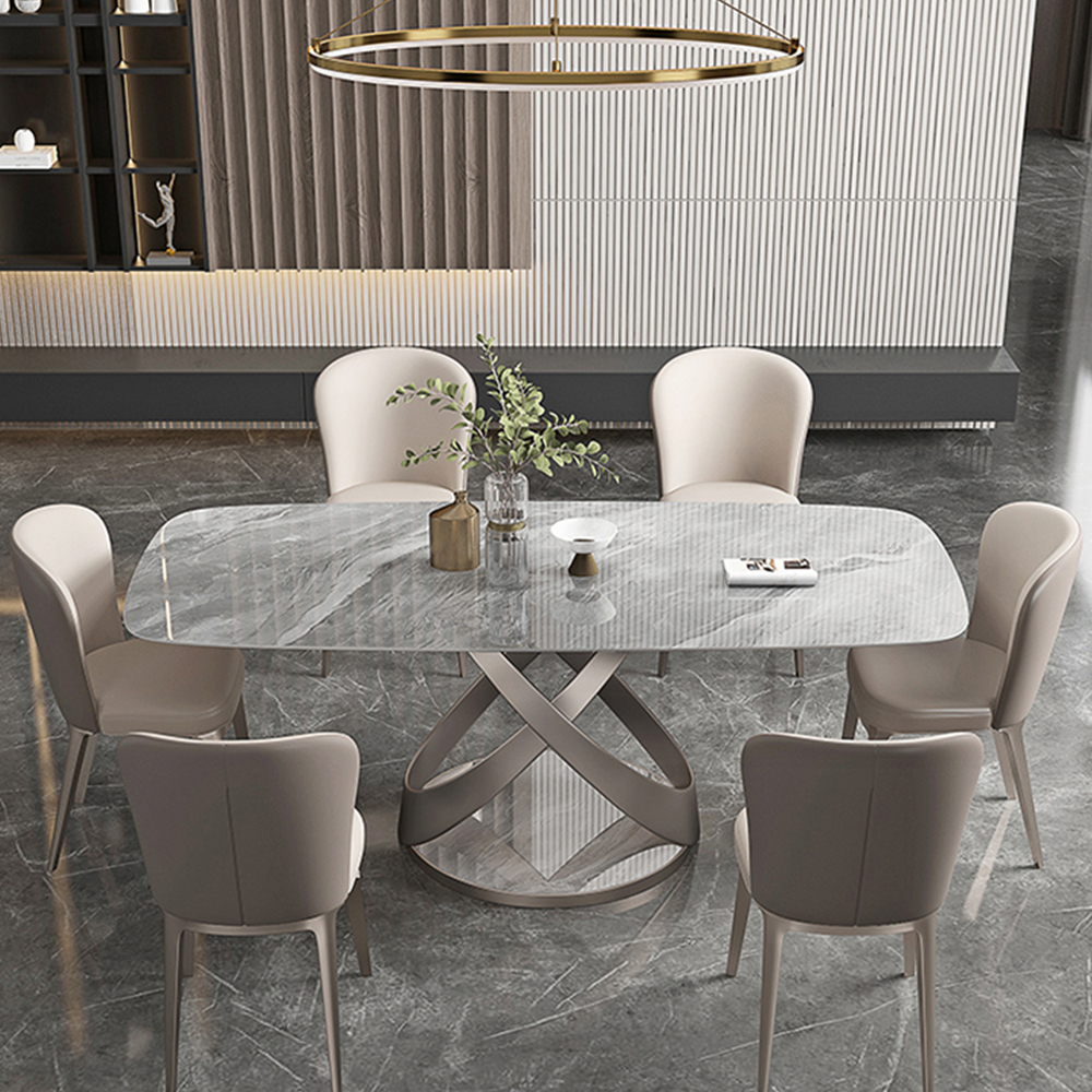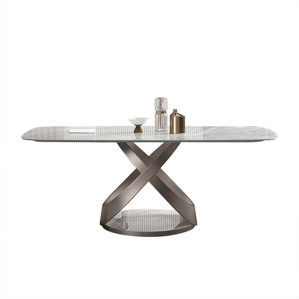 79"Modern Rectangular Dining Table for 6, with Gray Sintered Stone Tabletop, X-shaped Stainless Steel Base