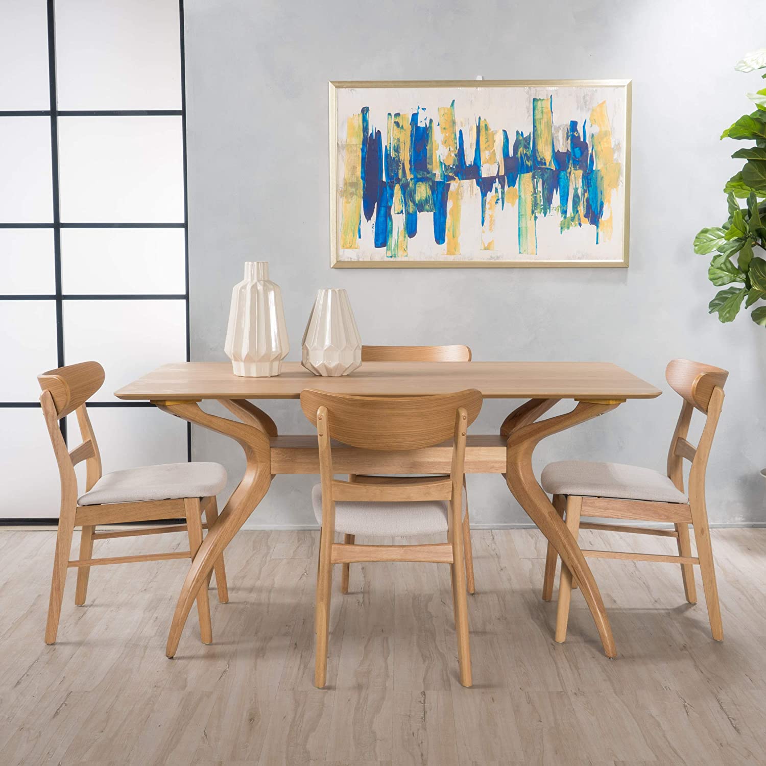 Christopher Knight Home Idalia Curved Leg Rectangular Dining Set, 5-Pcs Set, Natural Walnut / Mint