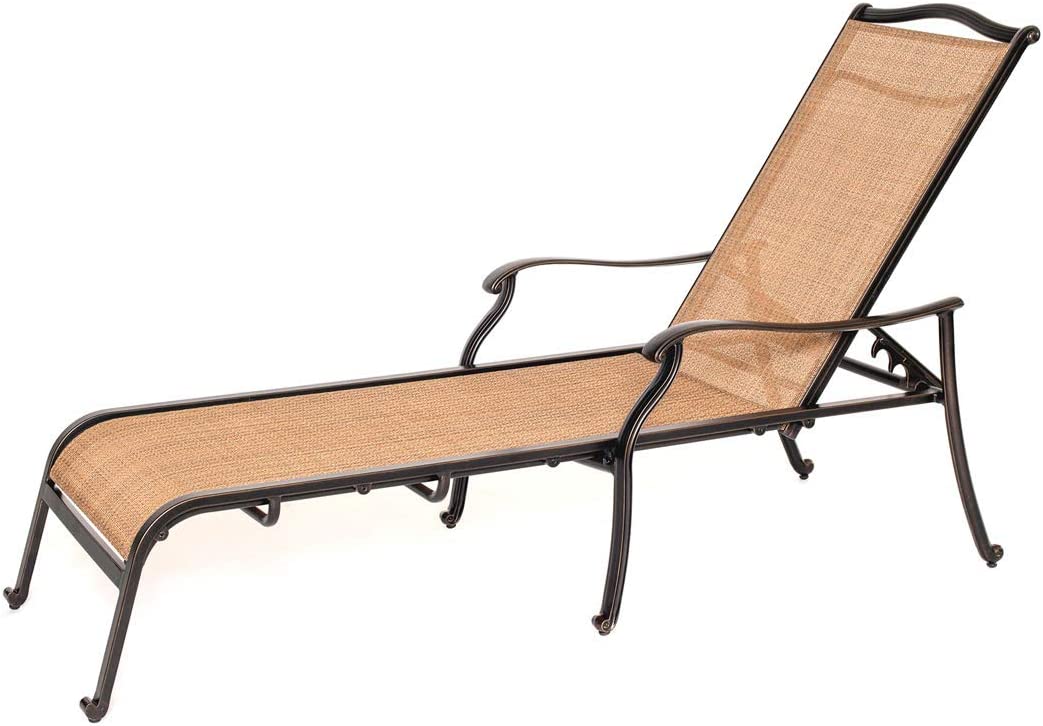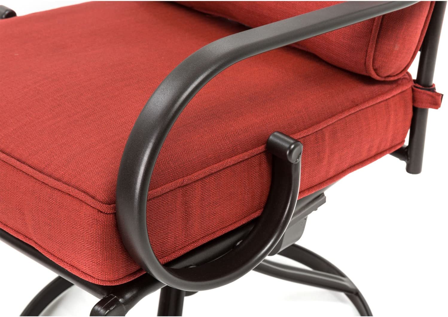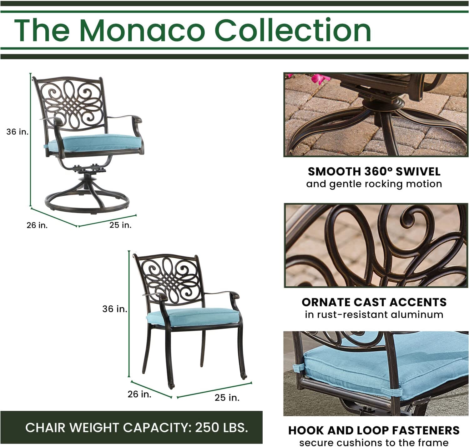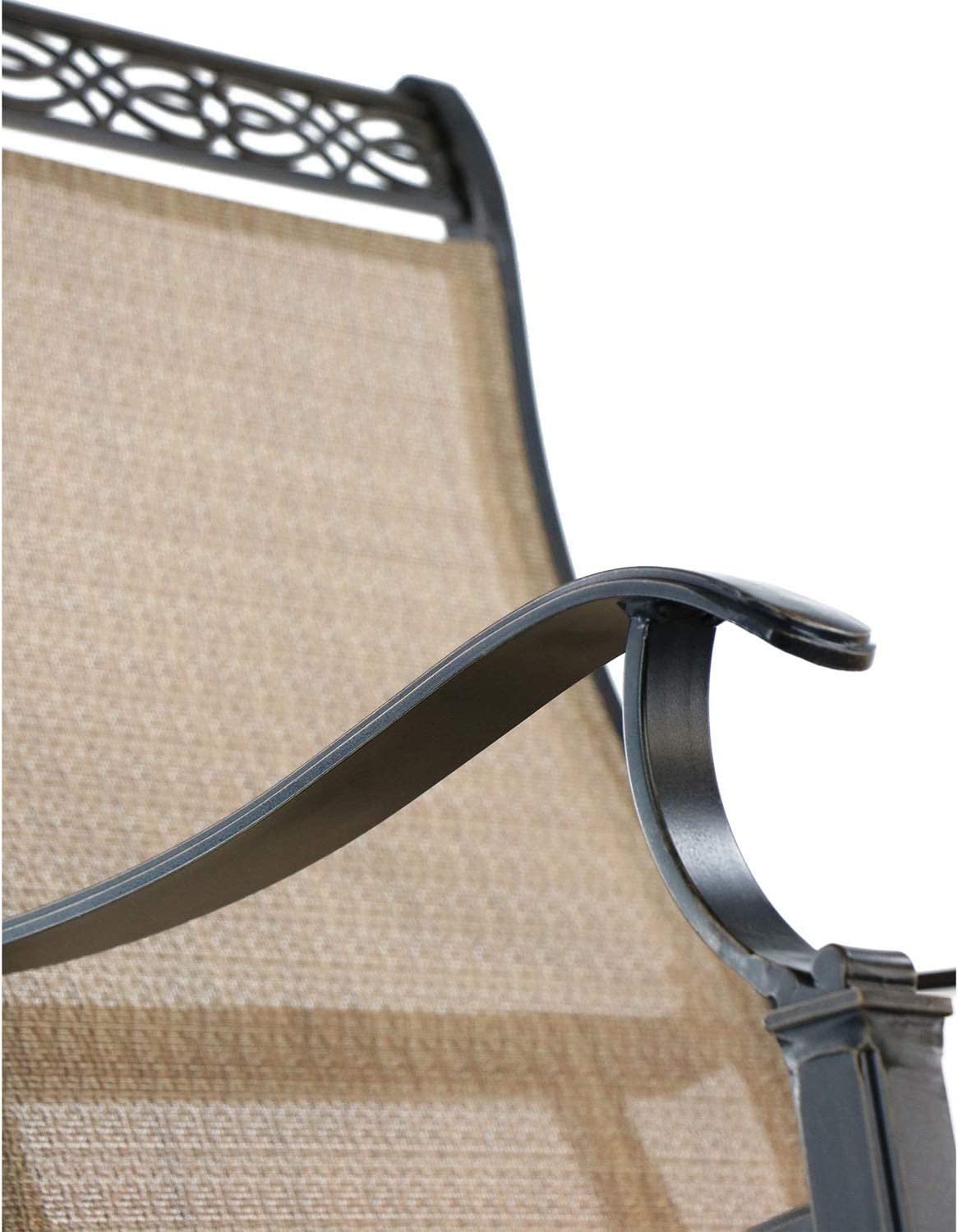 Hanover Montclair 7-Piece All-Weather Outdoor Patio Dining Set, 6 Swivel Rocker Chairs with Comfortable Tan Seat and Lumbar Cushions, 40"x66" Stamped Rectangle Table, MCLRDN7PCSQSW6-TAN