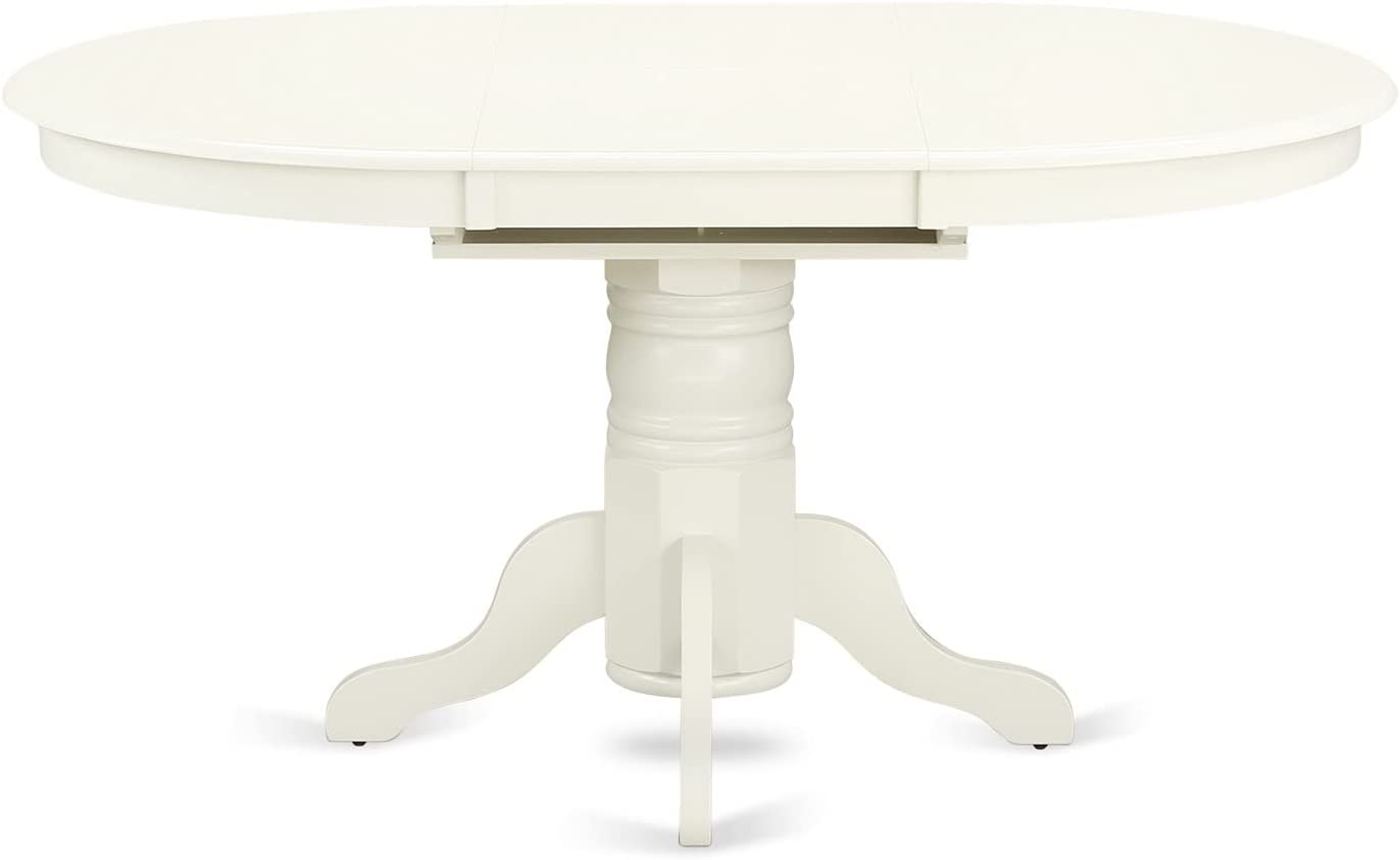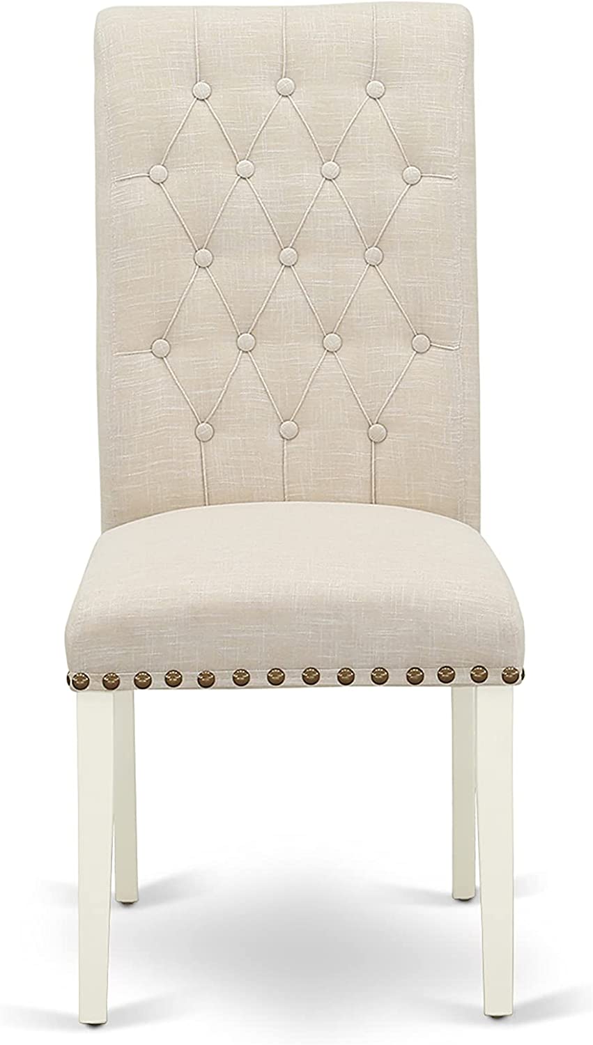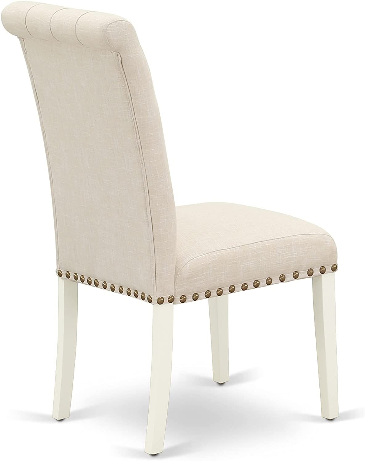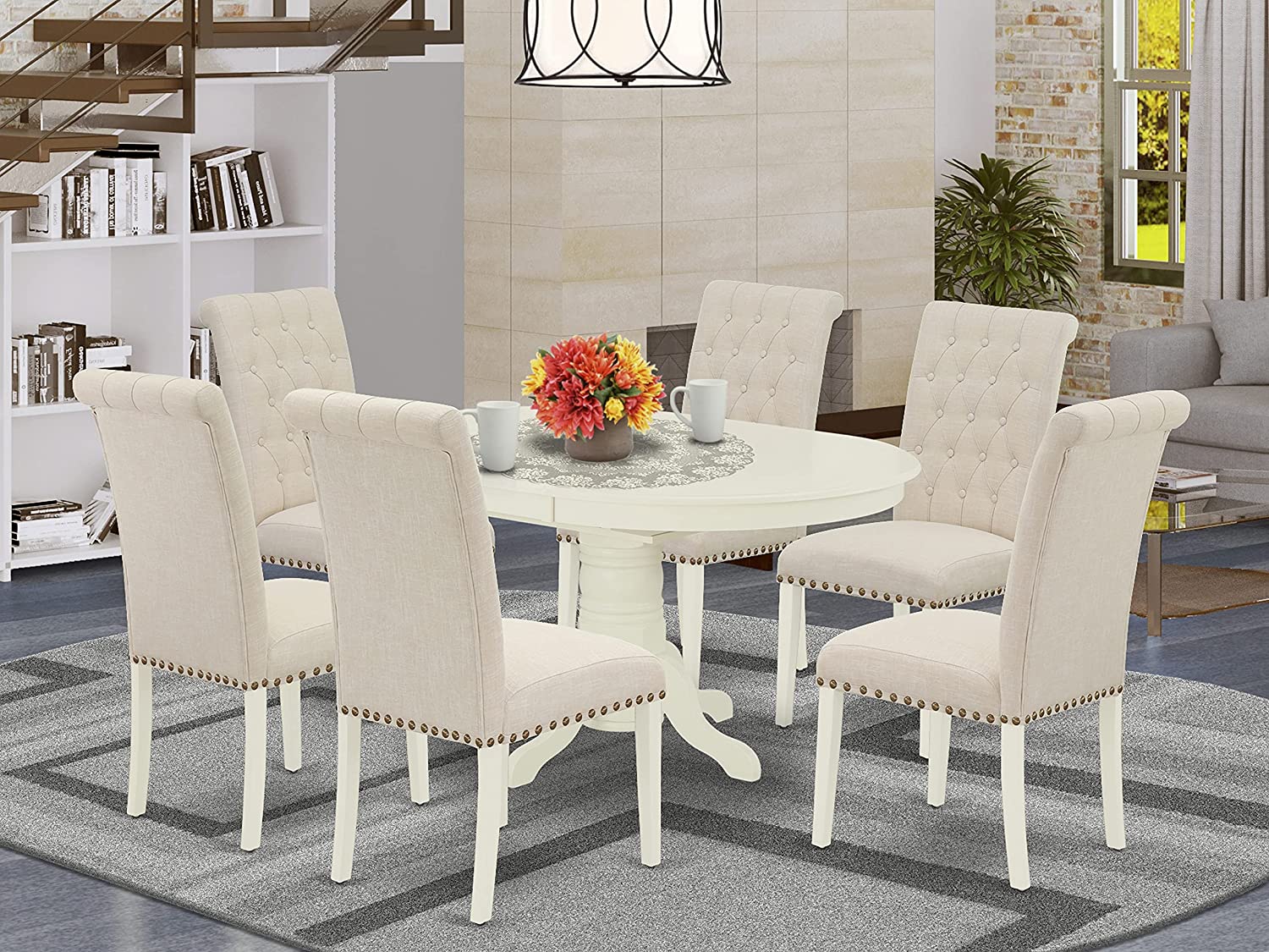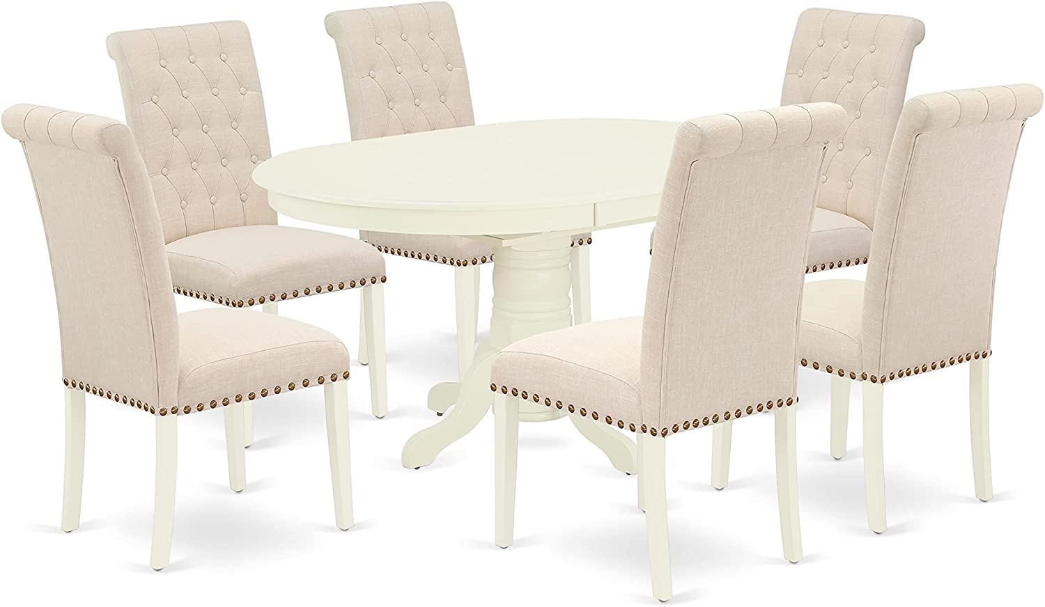 East West Furniture 5Pc Dining Set Includes an Oval Dinette Table with Butterfly Leaf and Four Parson Chairs with Light Beige Fabric, Linen White Finish
