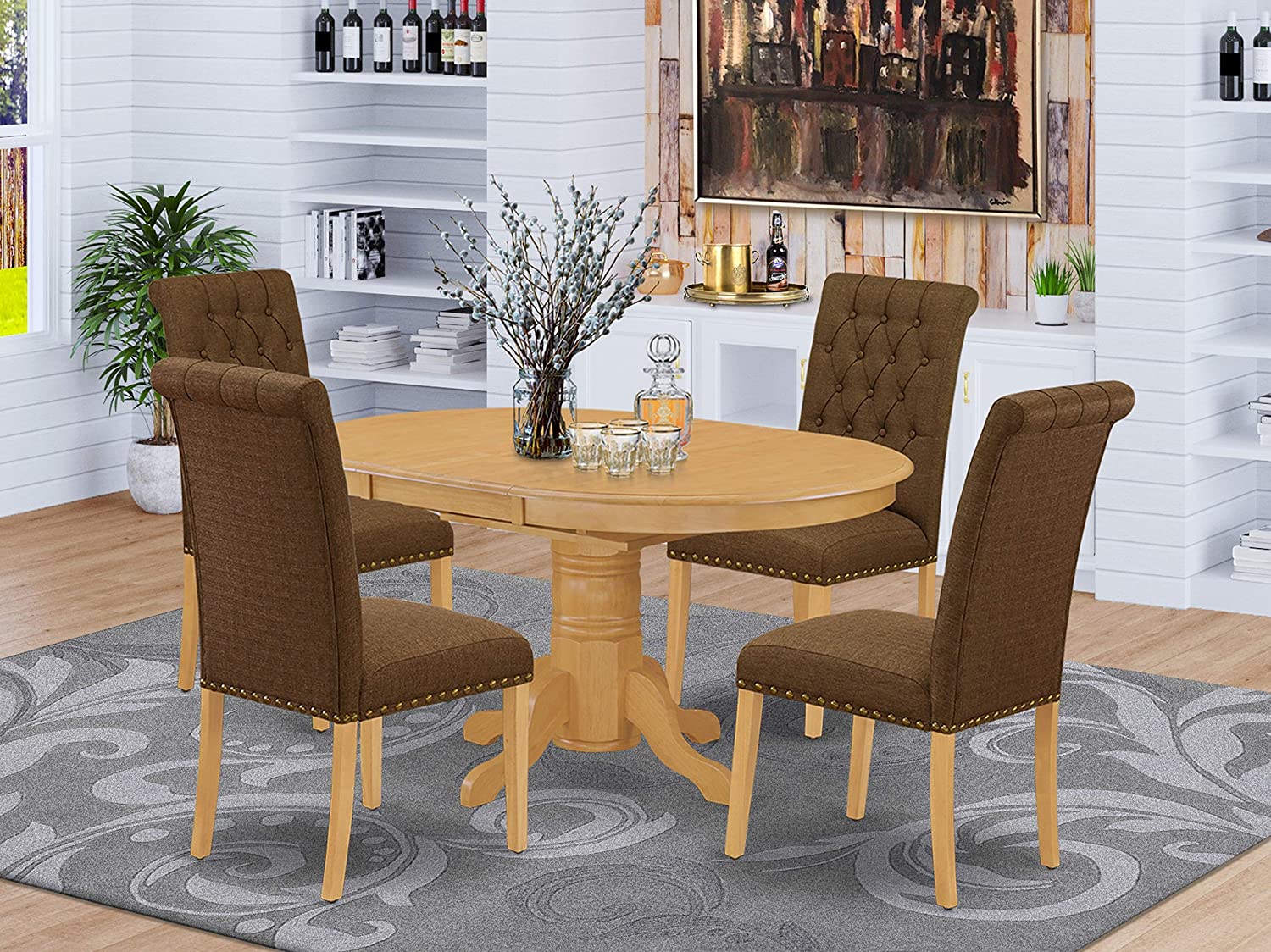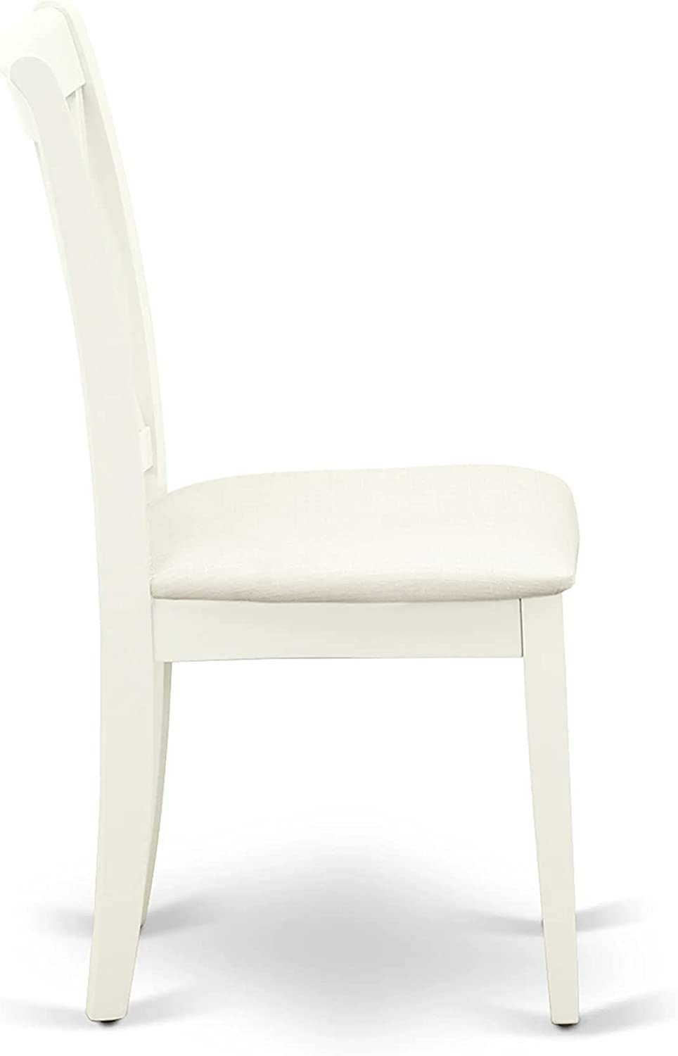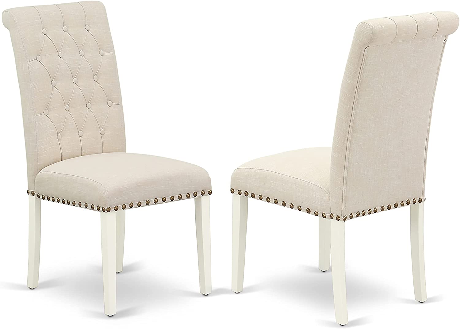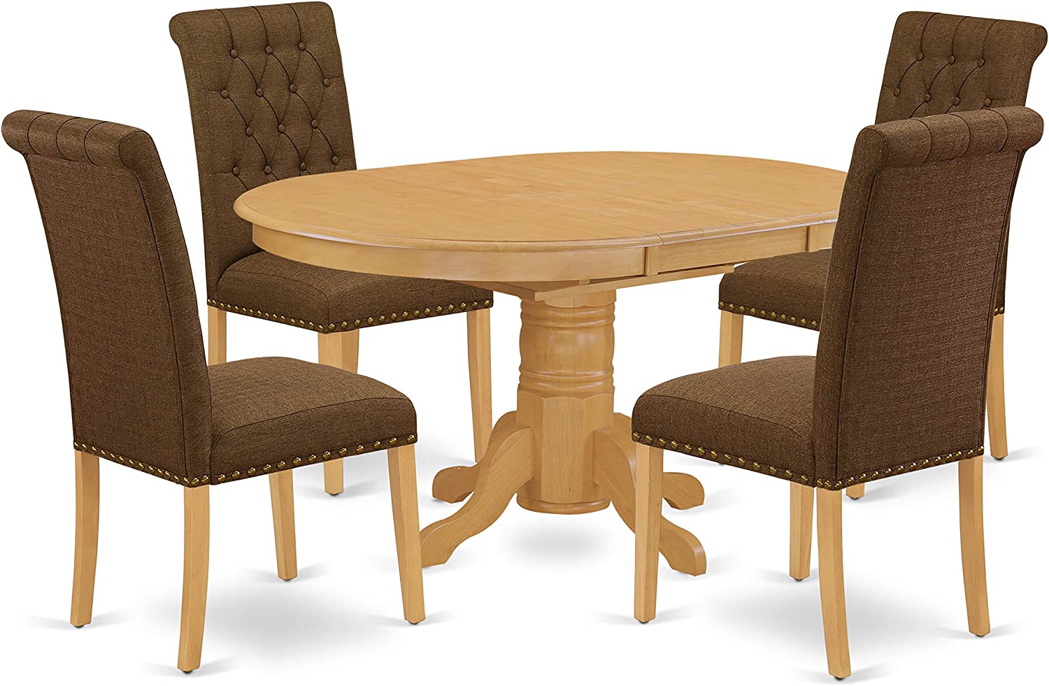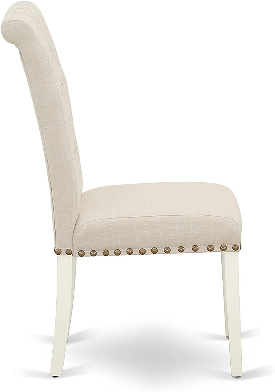 East West Furniture 5Pc Dining Set Includes an Oval Dinette Table with Butterfly Leaf and Four Parson Chairs with Light Beige Fabric, Linen White Finish