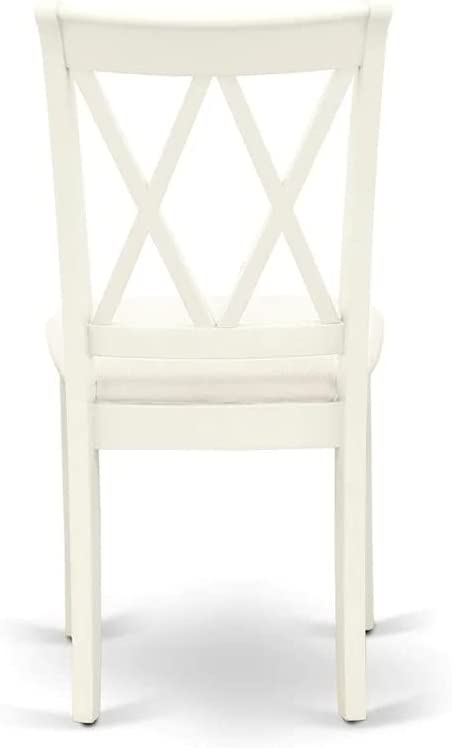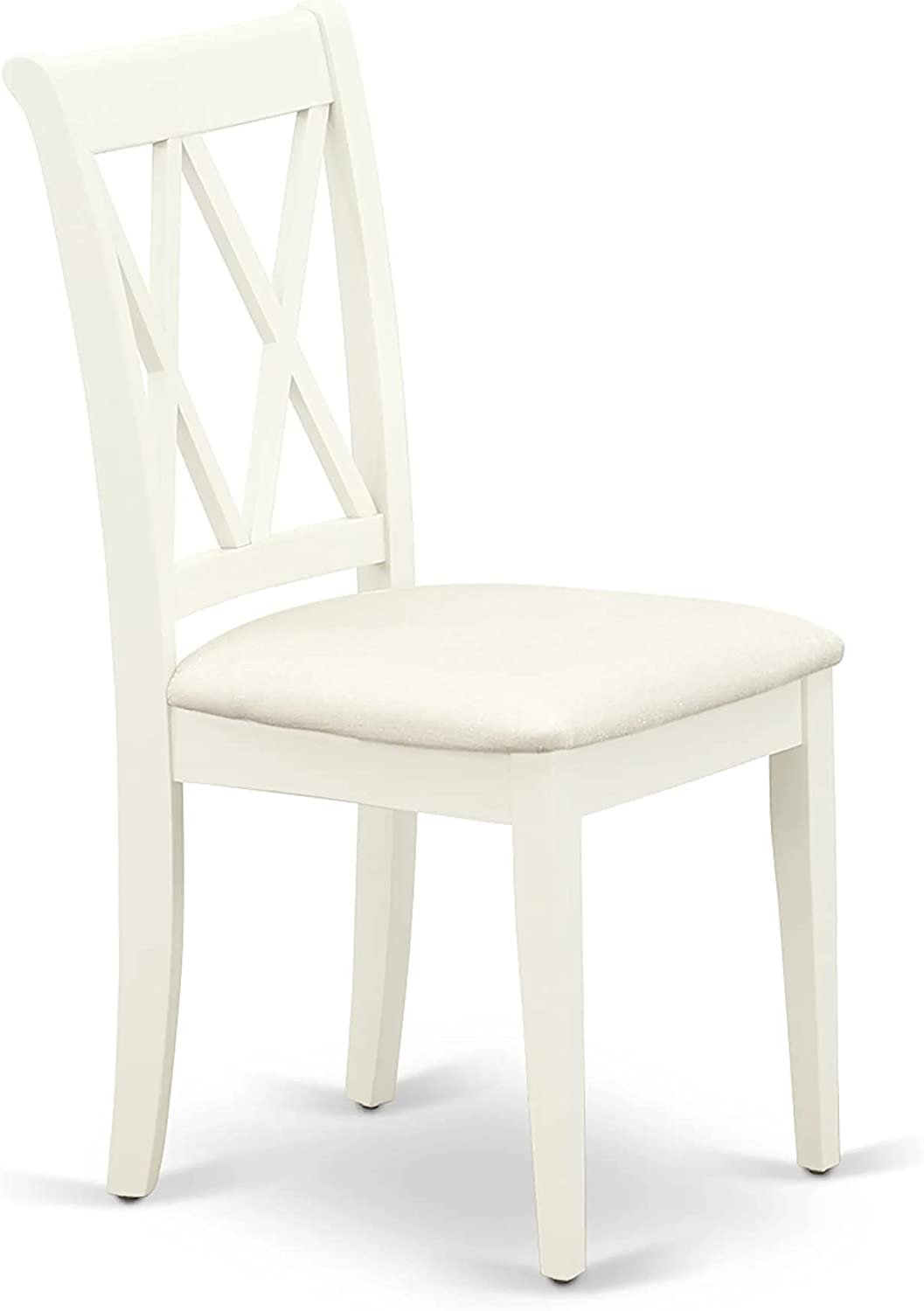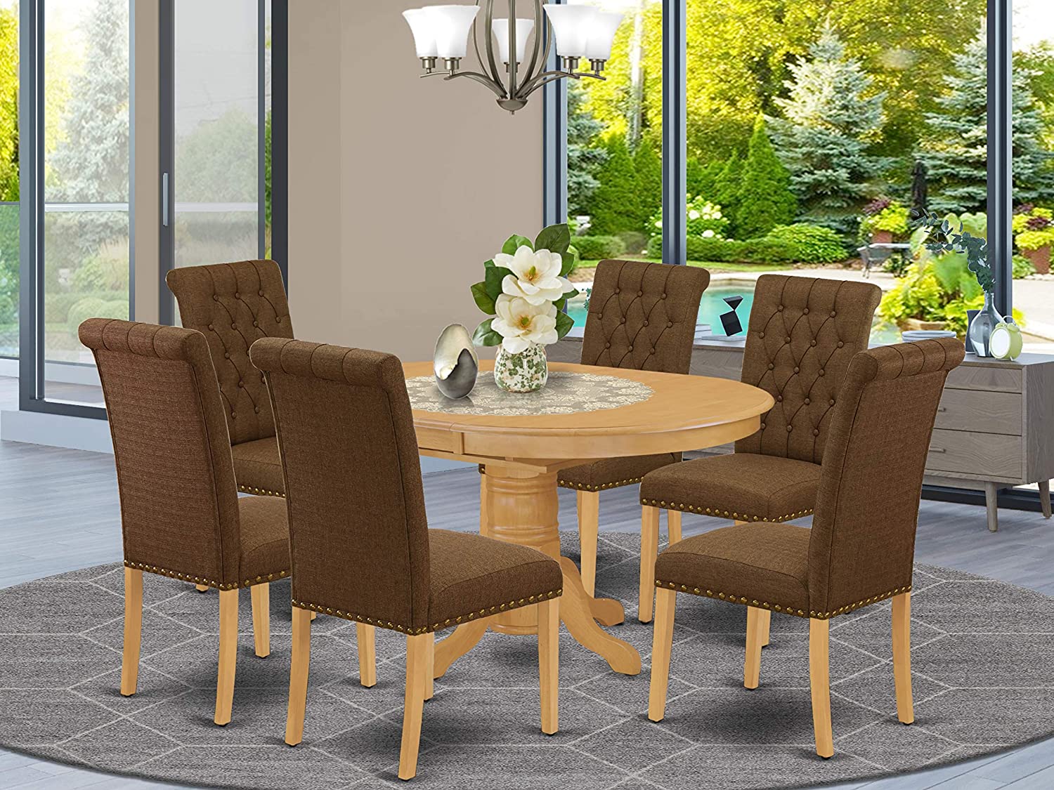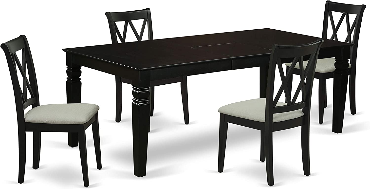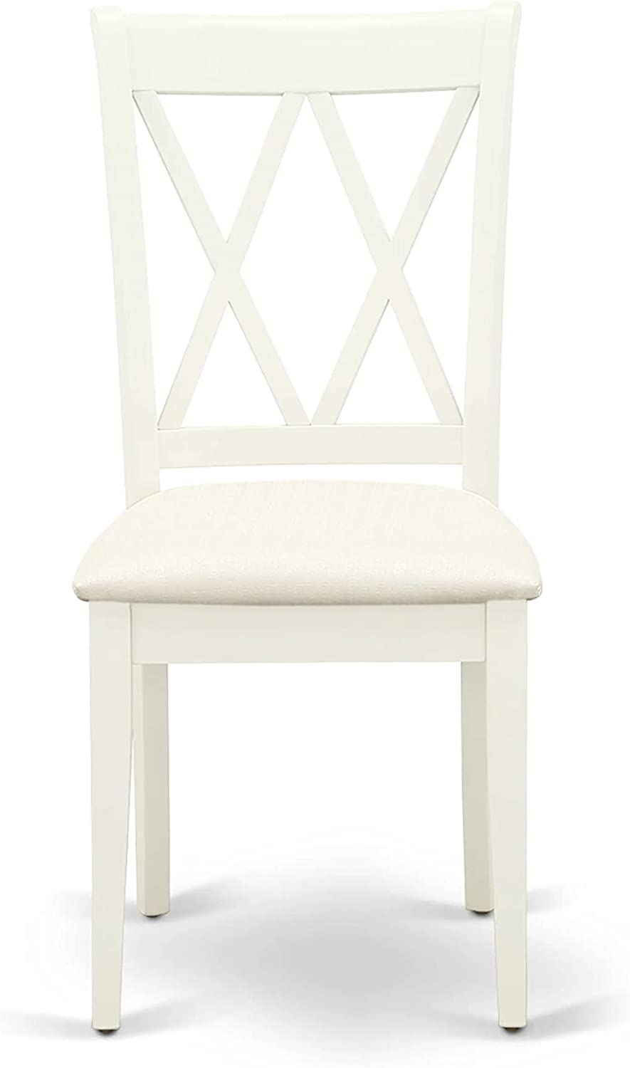 East West Furniture 5Pc Dining Set Includes an Oval Dinette Table with Butterfly Leaf and Four Parson Chairs with Light Beige Fabric, Linen White Finish