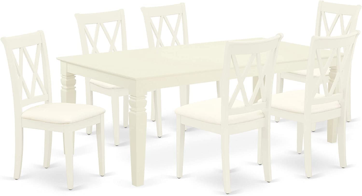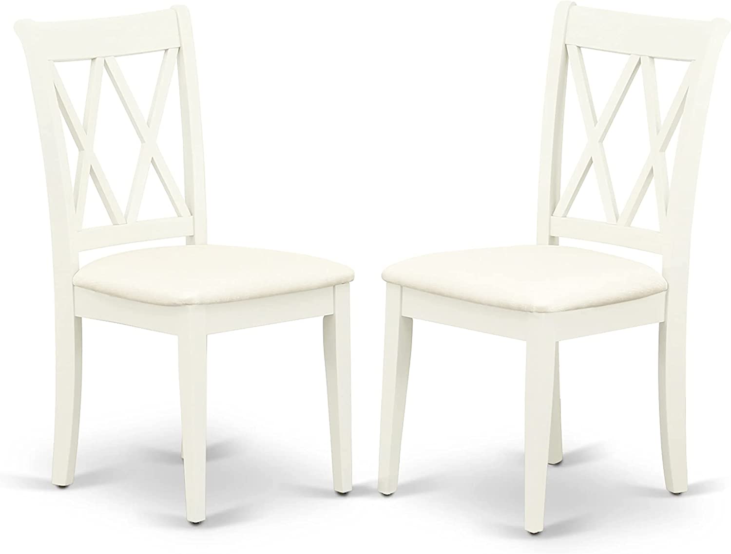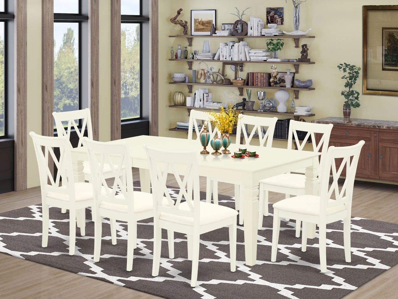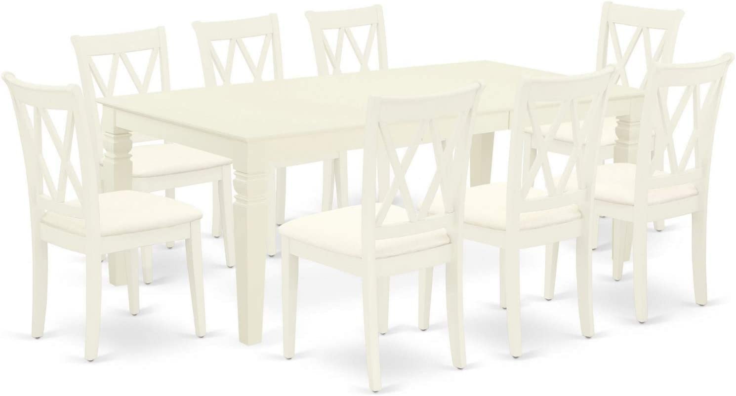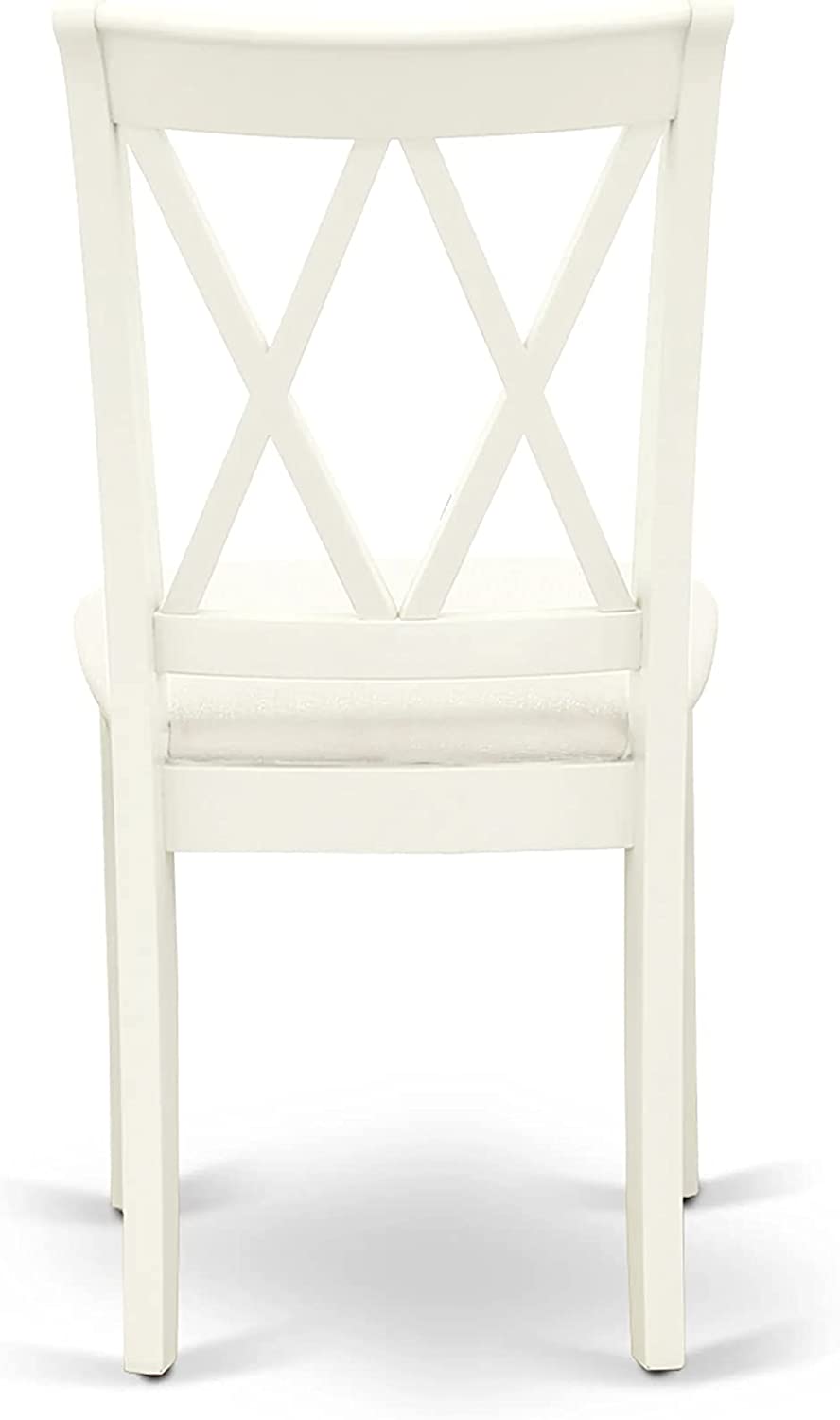 East West Furniture 5Pc Dining Set Includes an Oval Dinette Table with Butterfly Leaf and Four Parson Chairs with Light Beige Fabric, Linen White Finish