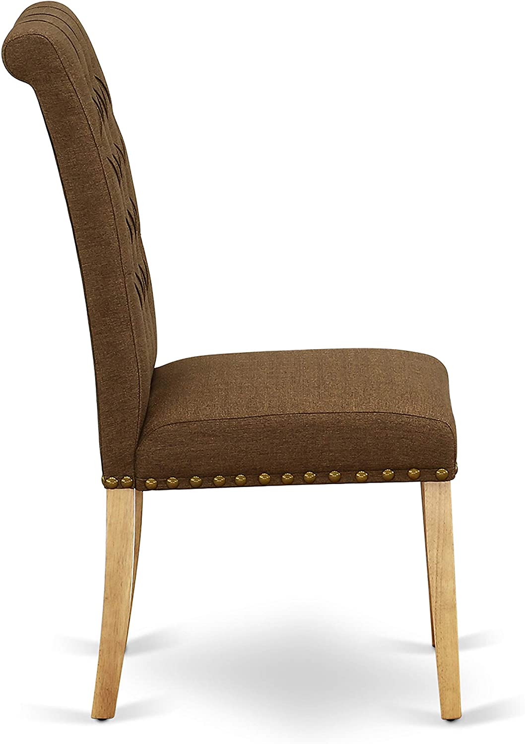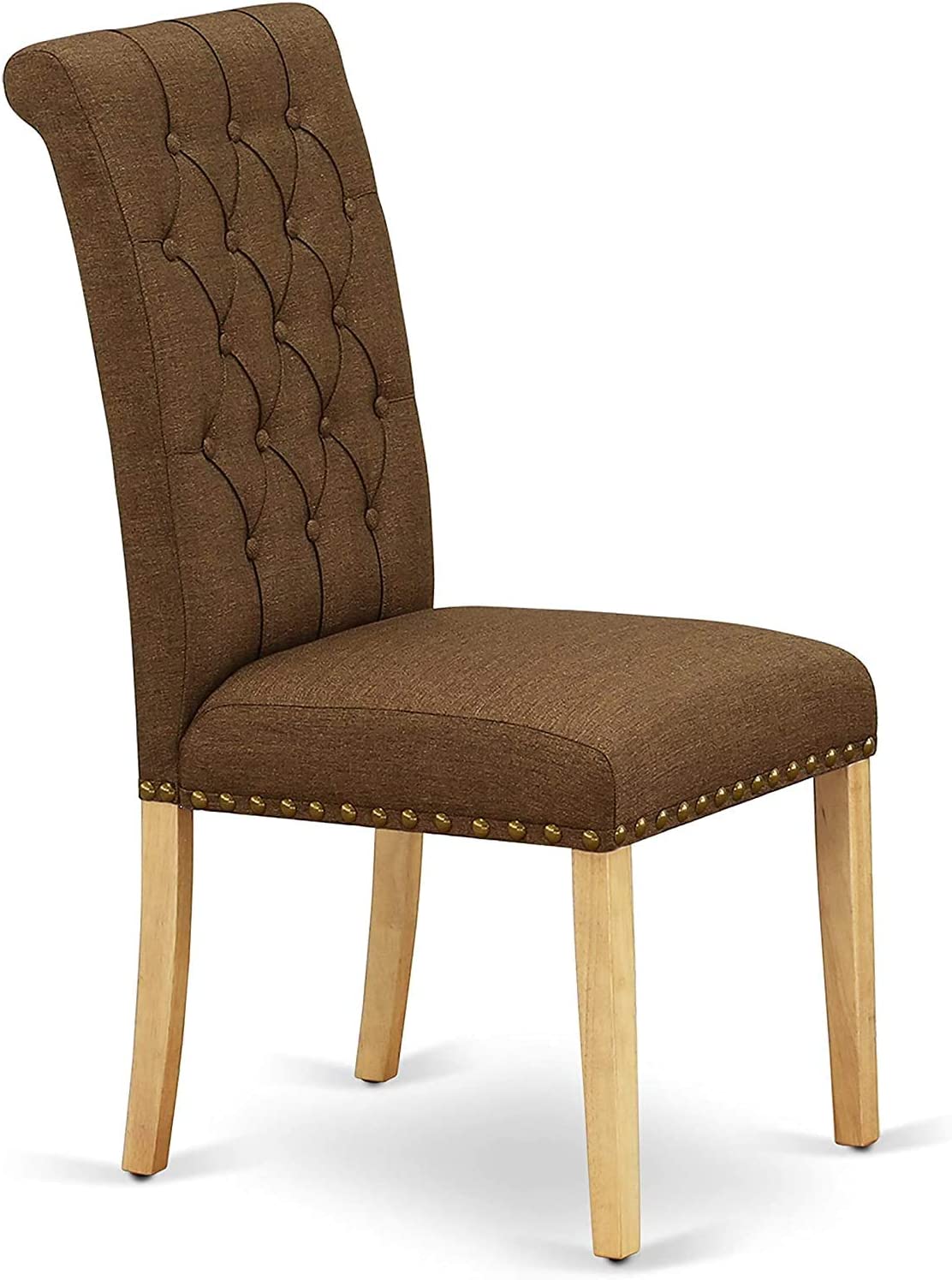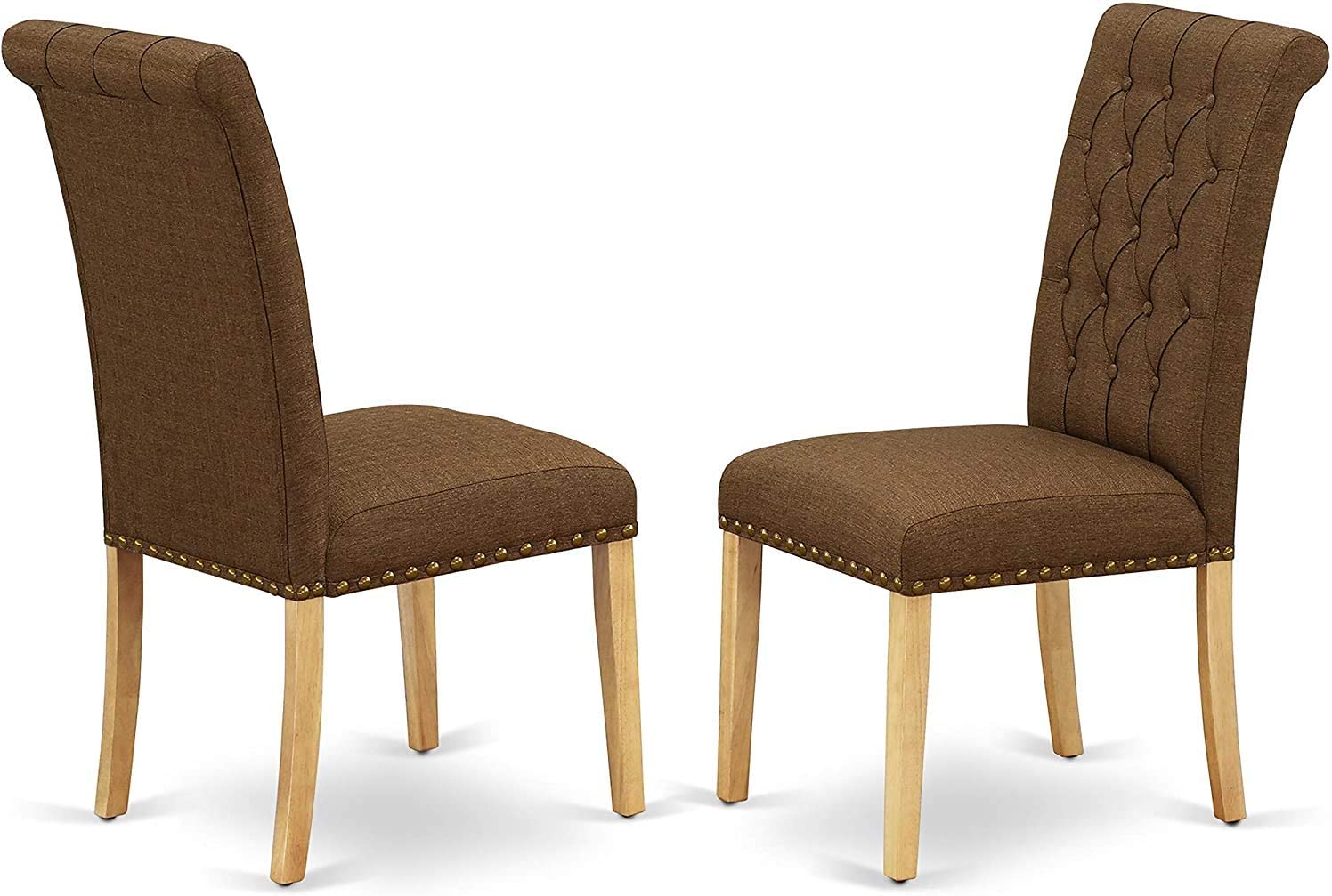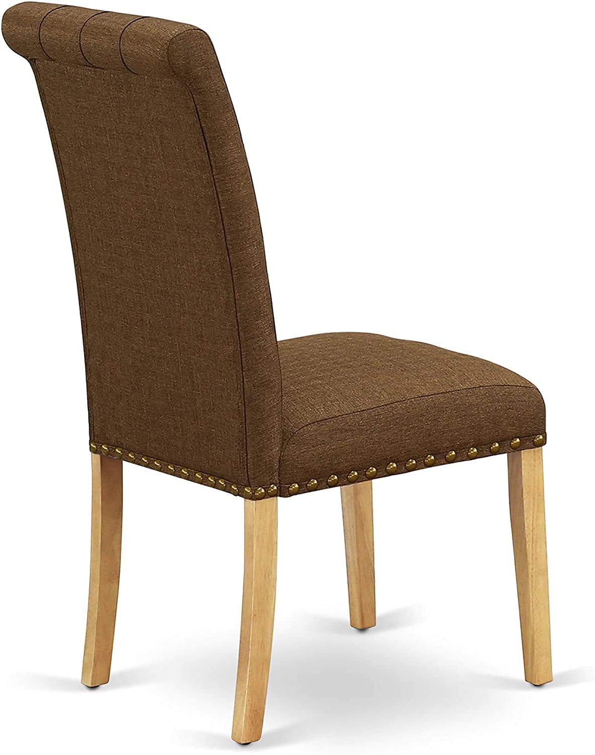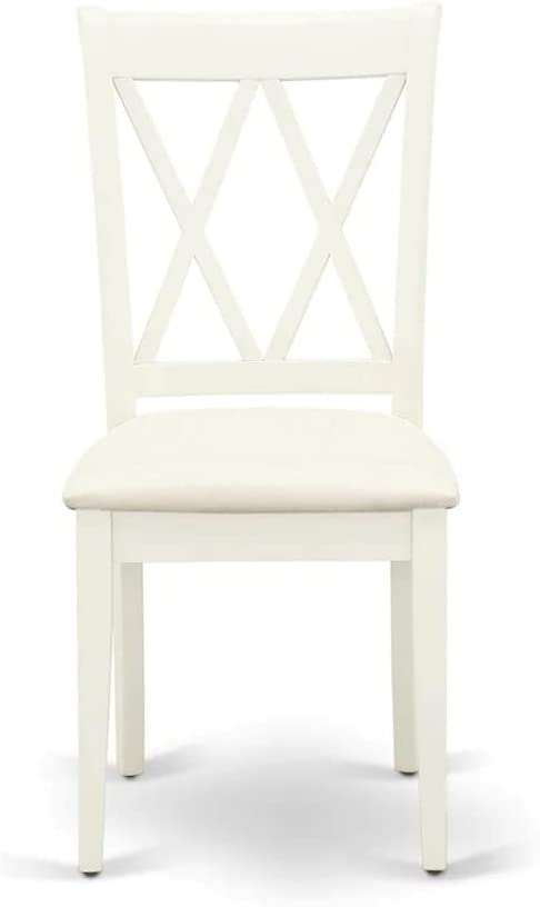 East West Furniture 5Pc Dining Set Includes an Oval Dinette Table with Butterfly Leaf and Four Parson Chairs with Light Beige Fabric, Linen White Finish
