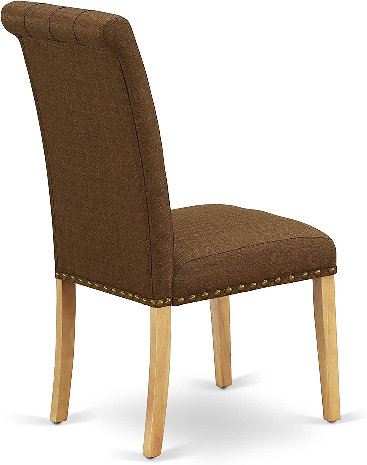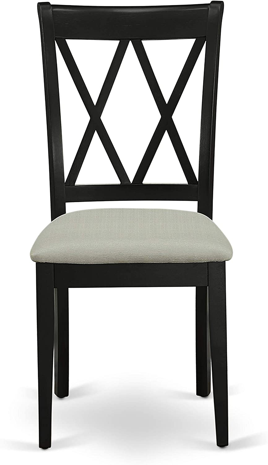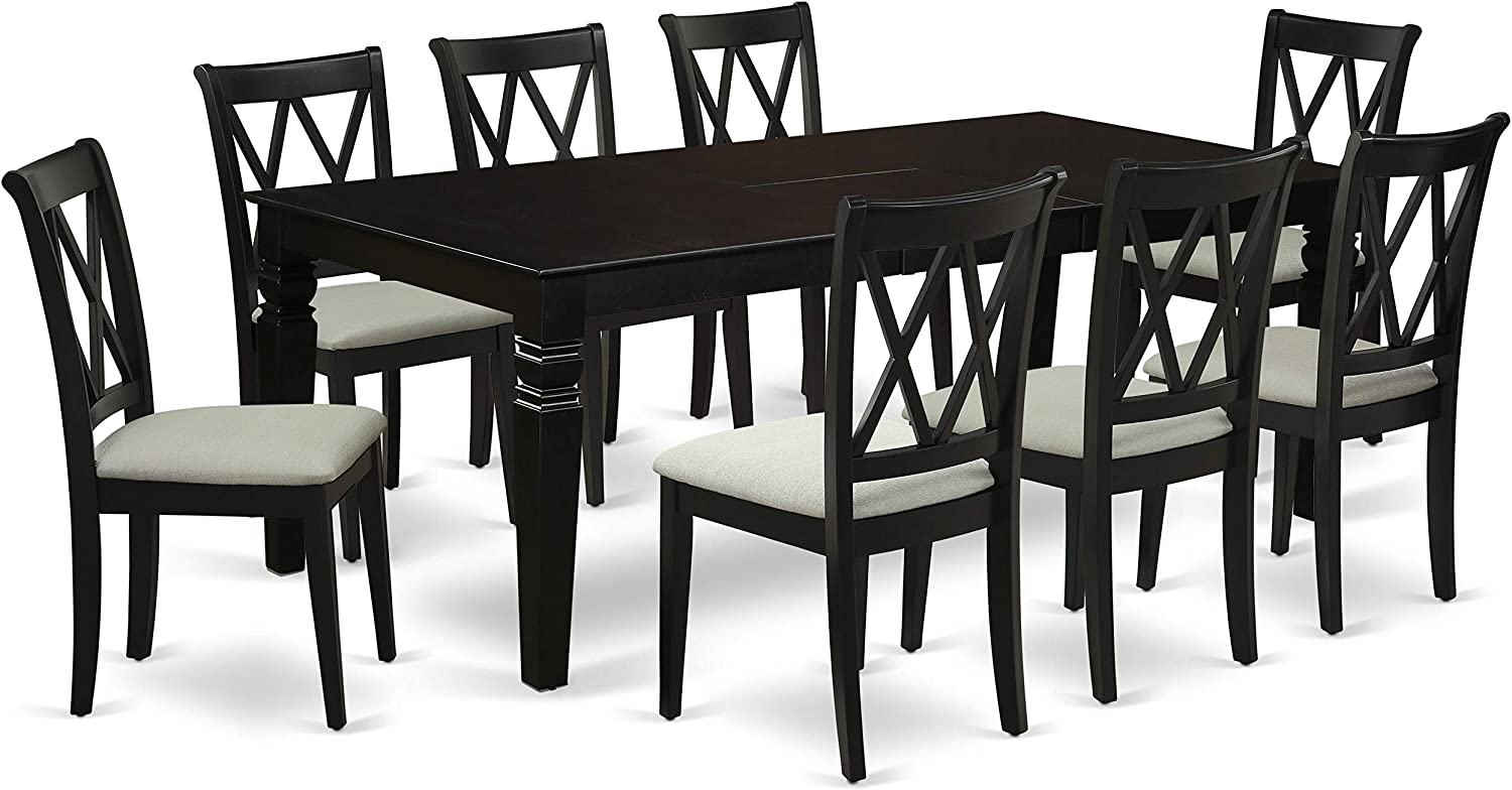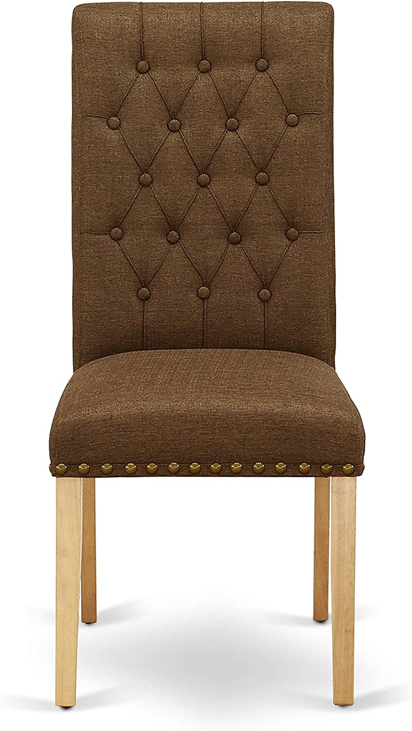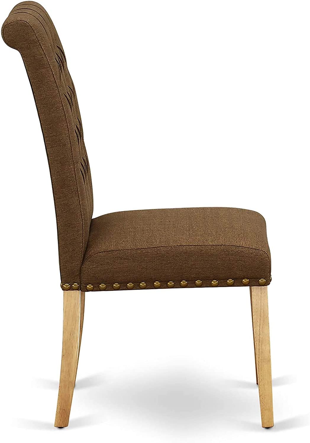 East West Furniture 5Pc Dining Set Includes an Oval Dinette Table with Butterfly Leaf and Four Parson Chairs with Light Beige Fabric, Linen White Finish