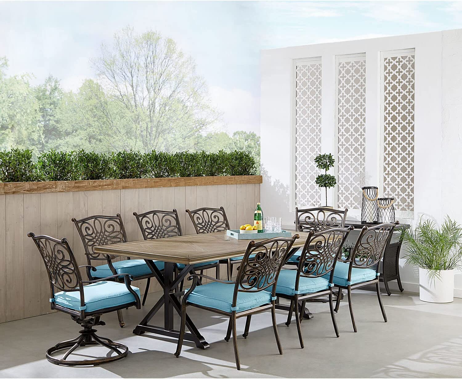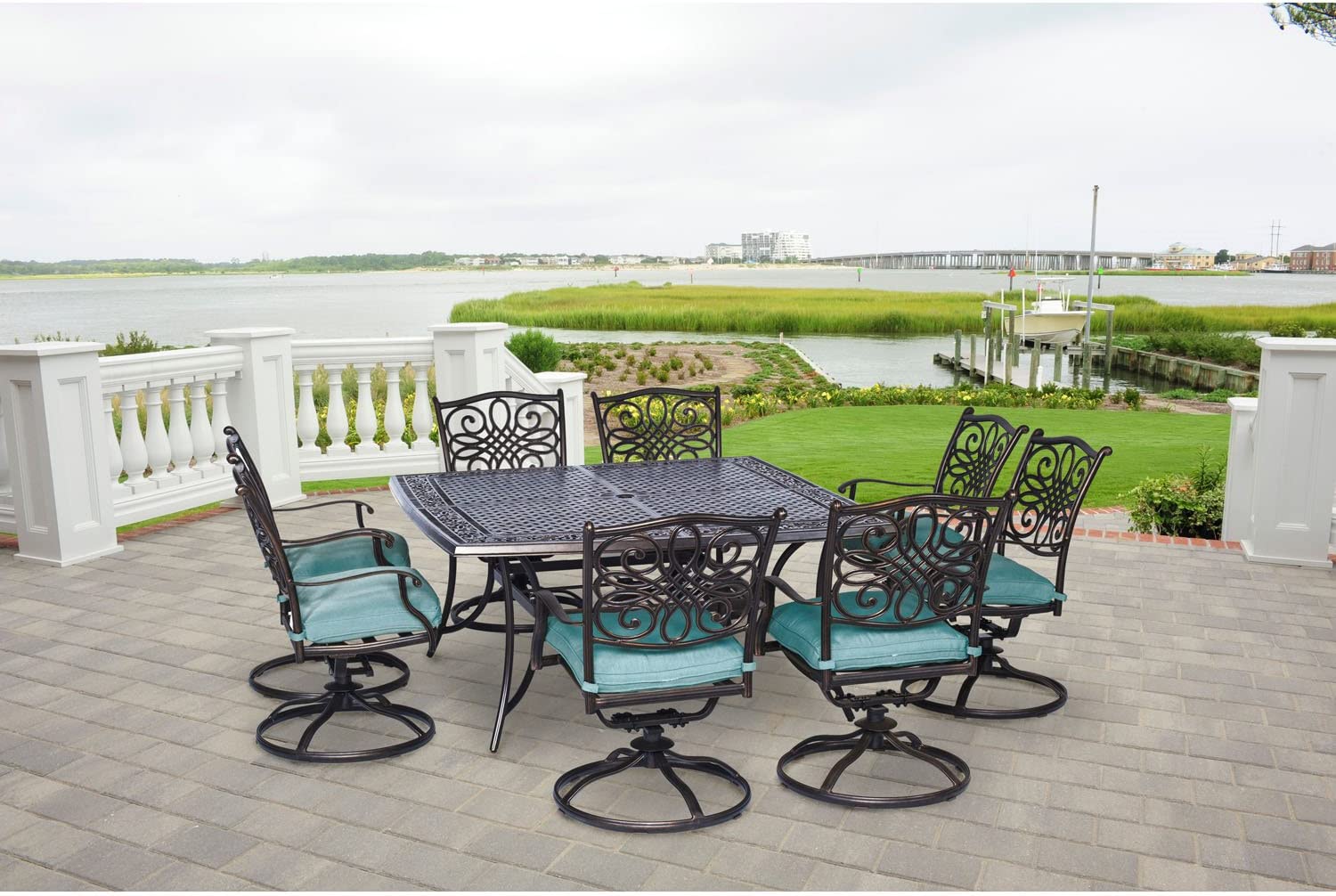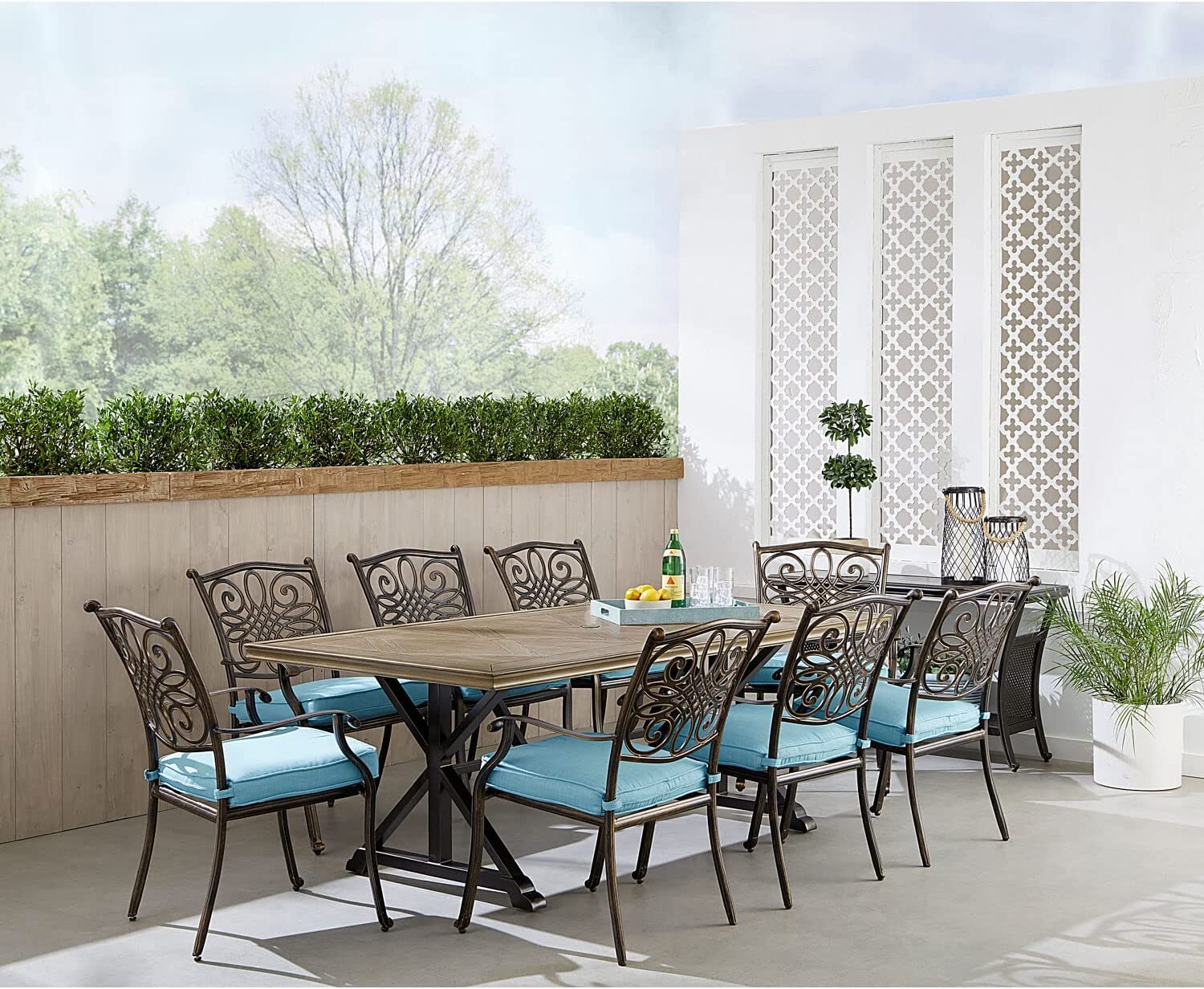 CAMBRIDGE SEAS9PCSWSQ8-BLU Seasons 9-Piece Square Dining Set Outdoor Furniture, Blue