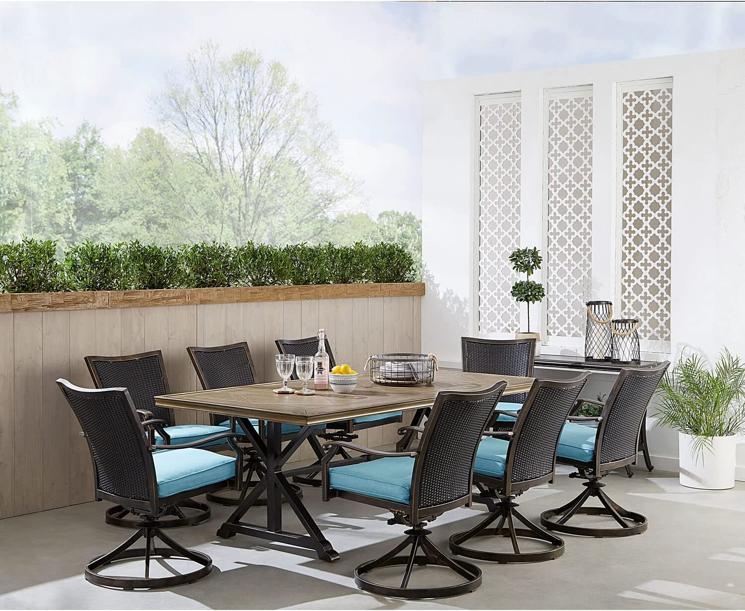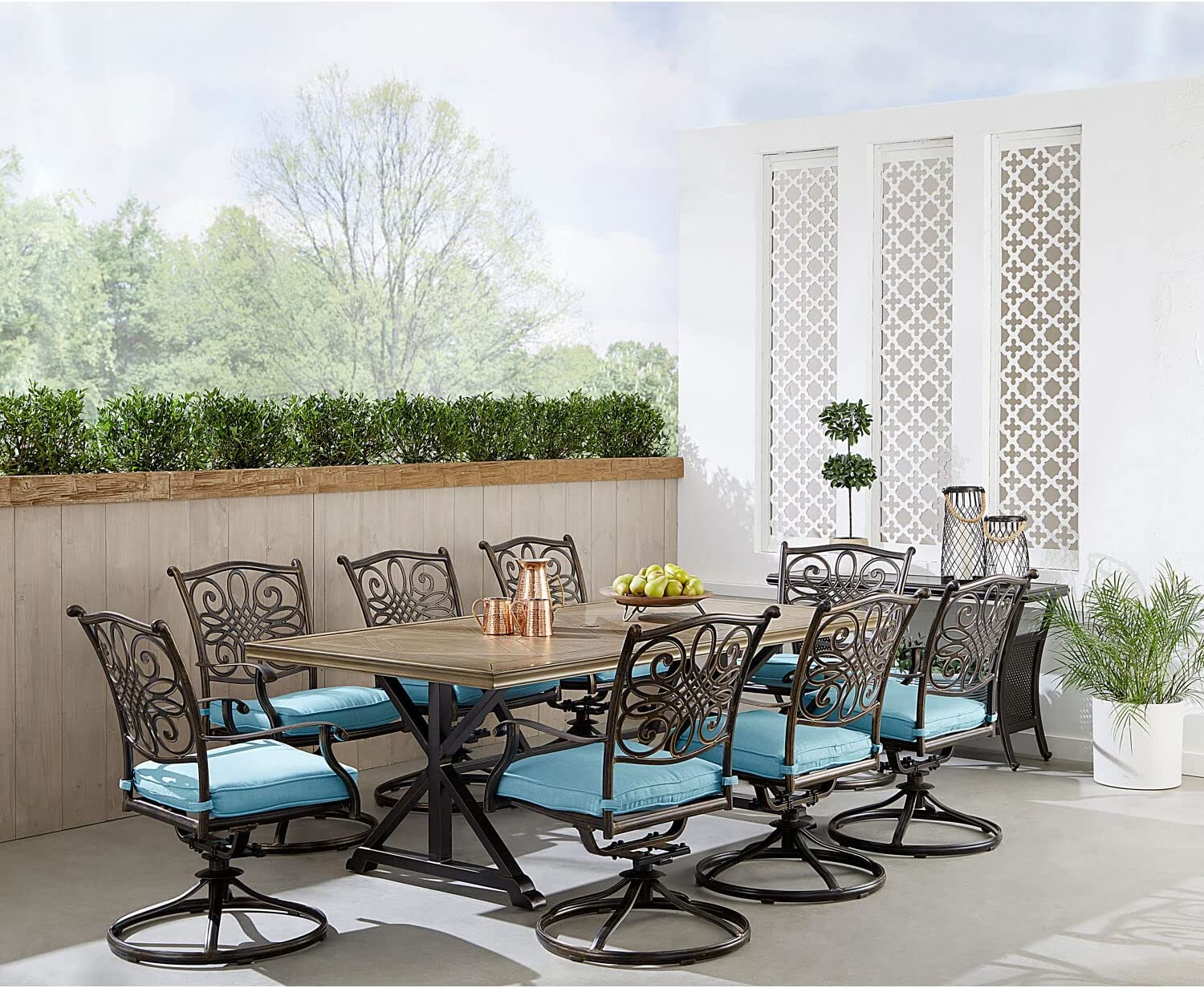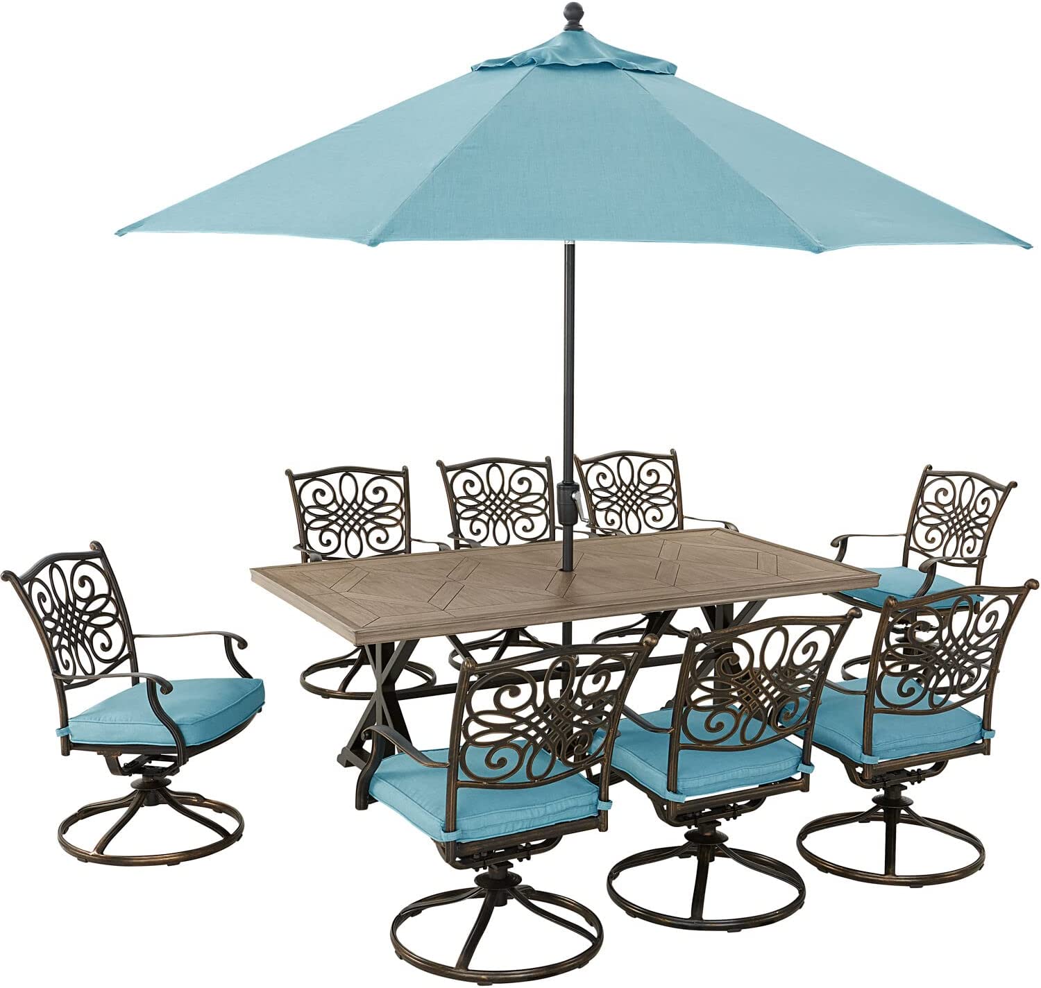 CAMBRIDGE SEAS9PCSWSQ8-BLU Seasons 9-Piece Square Dining Set Outdoor Furniture, Blue