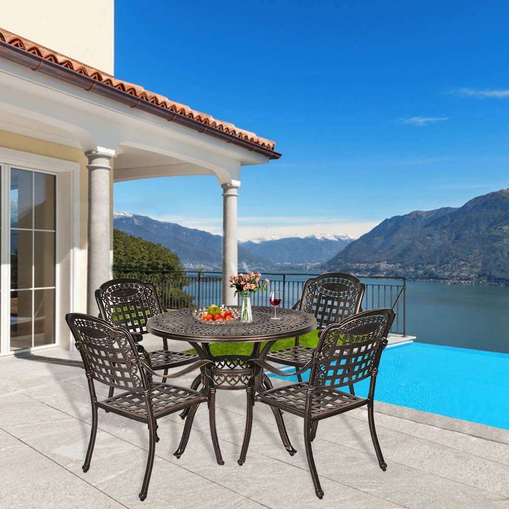 VONZOY 5 Piece Outdoor Patio Furniture Set with 32" 50000BTU Gas Propane Fire Pit Table, 4 Swivel Rocking Dining Chairs, Textilene Conversation Set - Glass Table