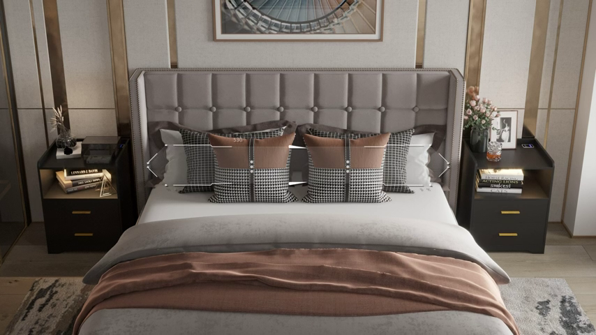 【Furniture】Modern Mid-Century Upholstered Night Stand with 2 Drawers for Bedroom Wood Bedside End Table