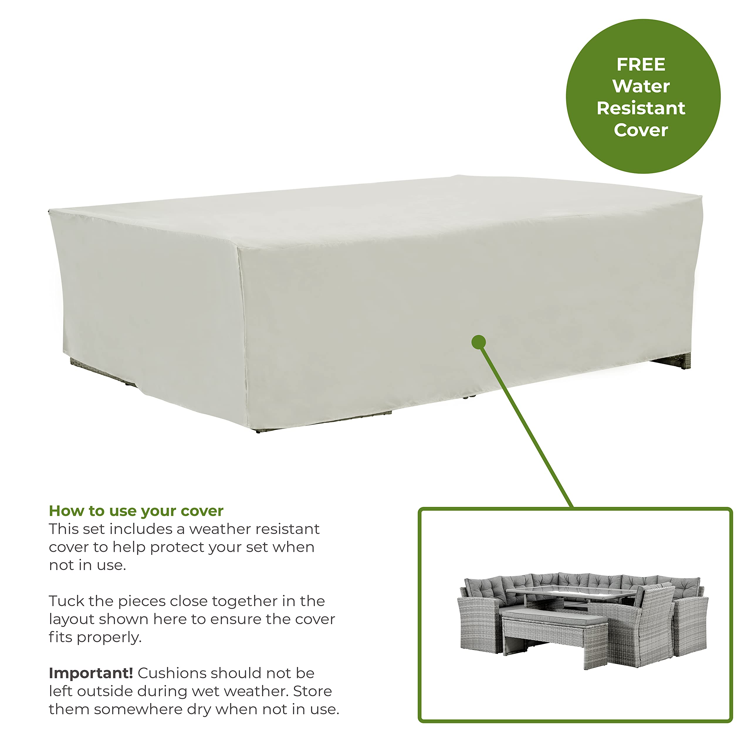 【Furniture】Sorrento Grey Rattan Outdoor Garden Dining Set 8 Seat - Right Side Facing