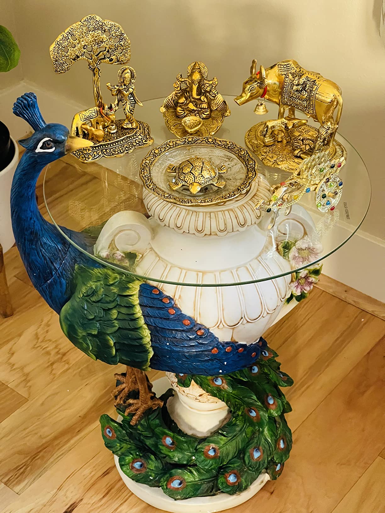 【Furniture】Staverden Castle Peacock Glass Topped Side Table, 25 Inch, Full Color