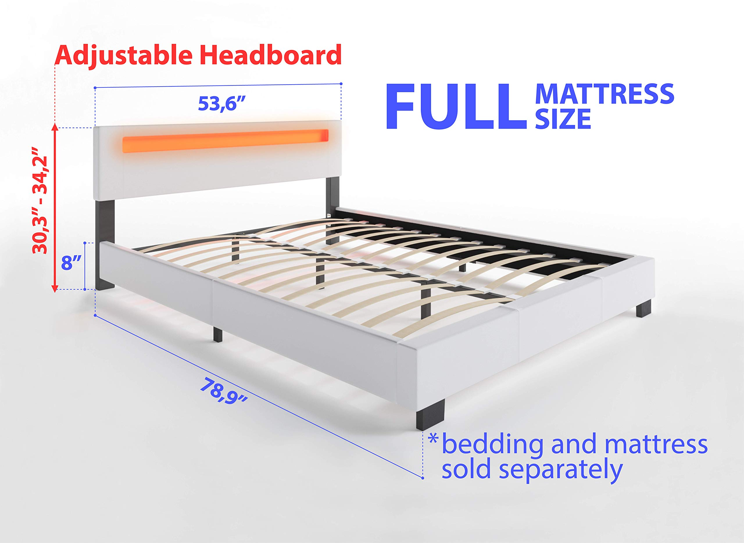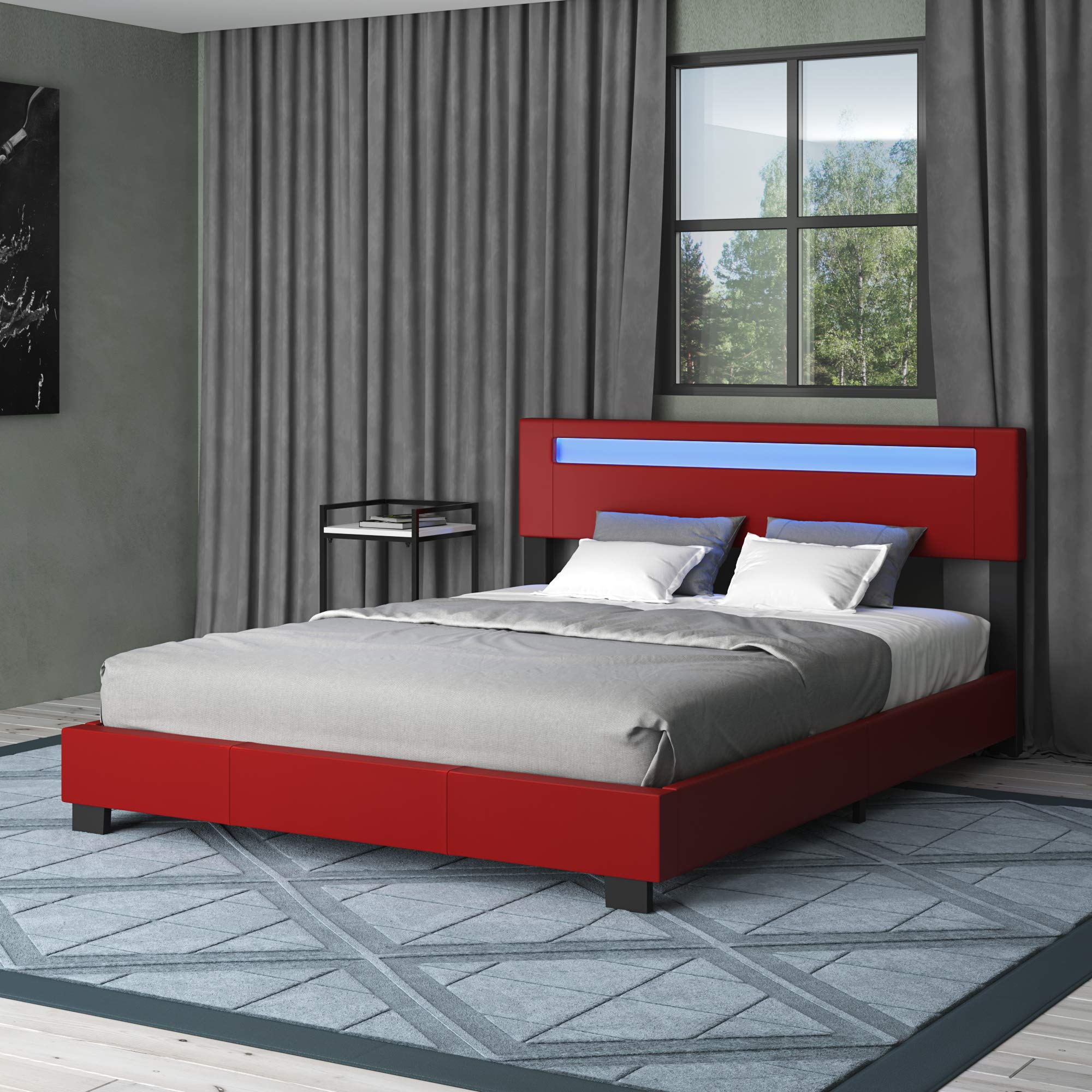 【Furniture】Pezzolla LED Bed Frame King Size - Contemporary Modern Low Profile Platform Bed with 16 Colors LED