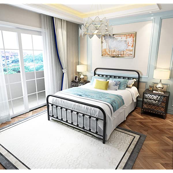Black Metal Bed Frame Full Size with Headboard and Footboard Single Platform Mattress Base,Metal Tube and Iron-Art Bed(Full,Black) Full Black