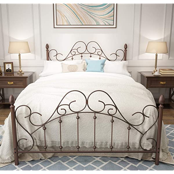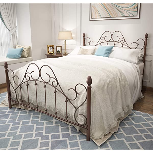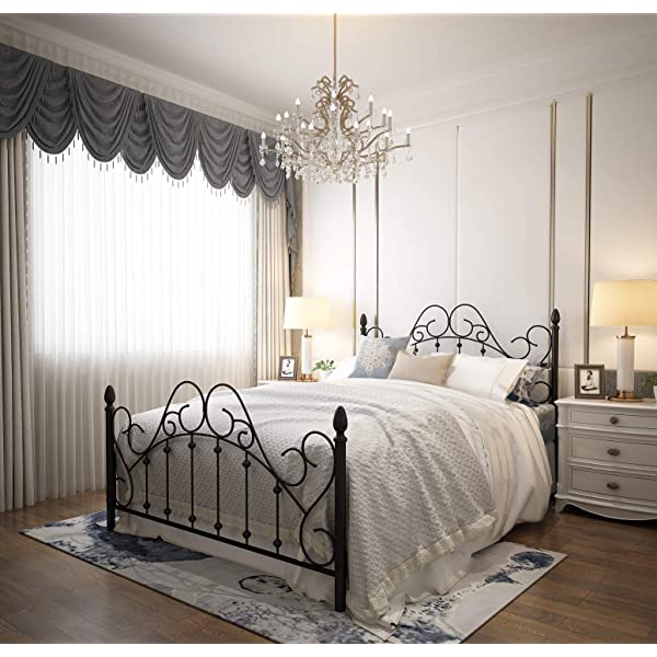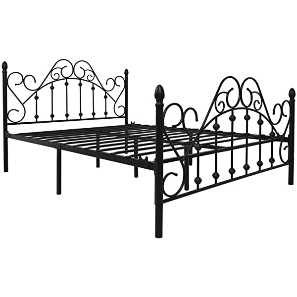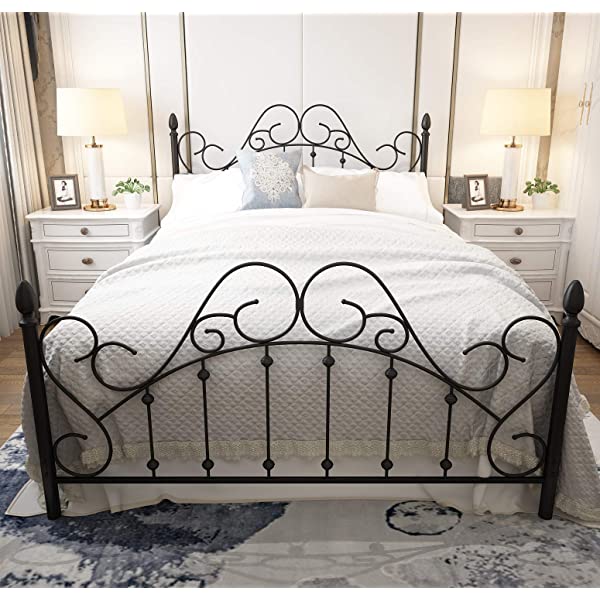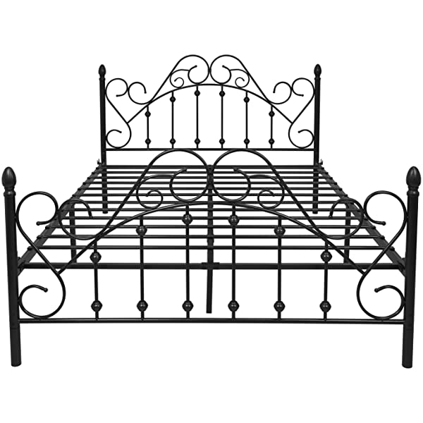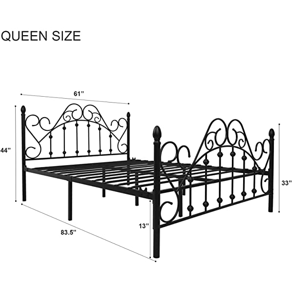 Black Queen Platform Metal Bed Frame with Headboard and Footboard,Vintage Victorian Style Mattress Foundation, No Box Spring Required, Black,Queen. Queen Black