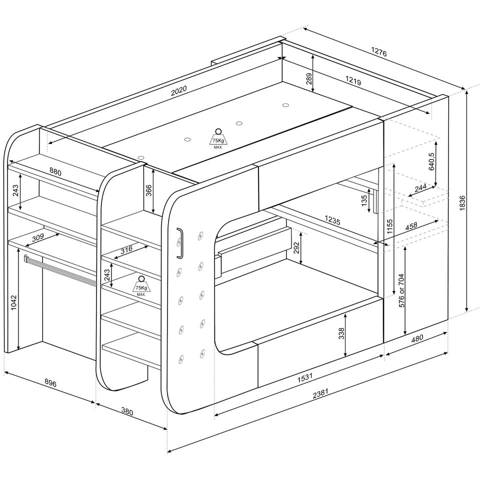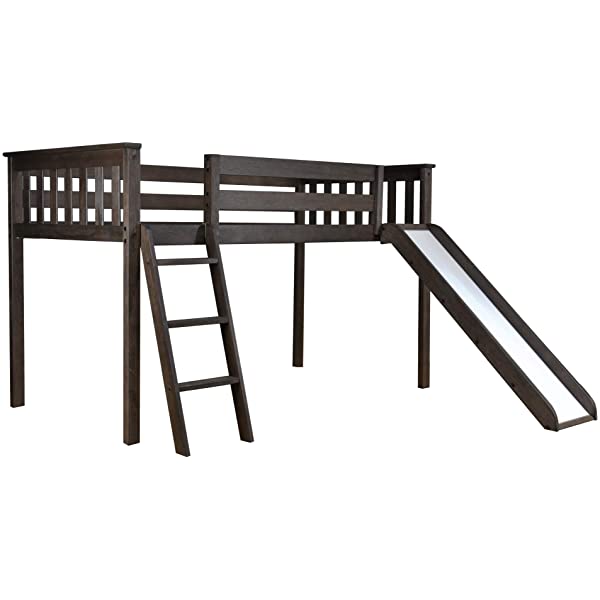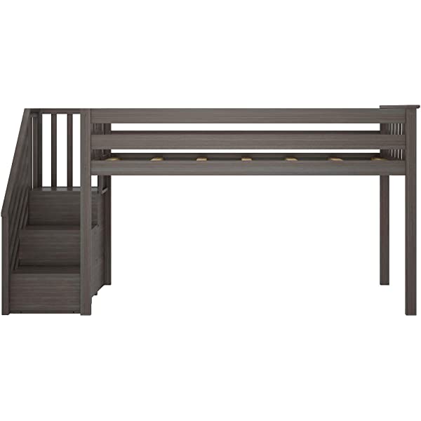 Max & Lily Twin Low Loft Bed with Staircase, White White Low Loft + Staircase Bed