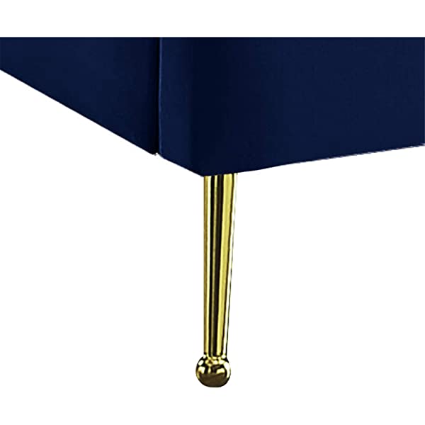 Meridian Furniture Lily Collection Modern | Contemporary Velvet Upholstered Bed with Deep Channel Tufting and Custom Gold Steel Legs, Queen, Cream Cream Queen