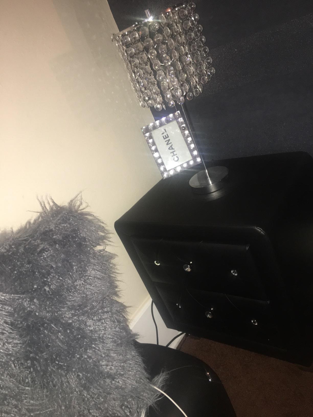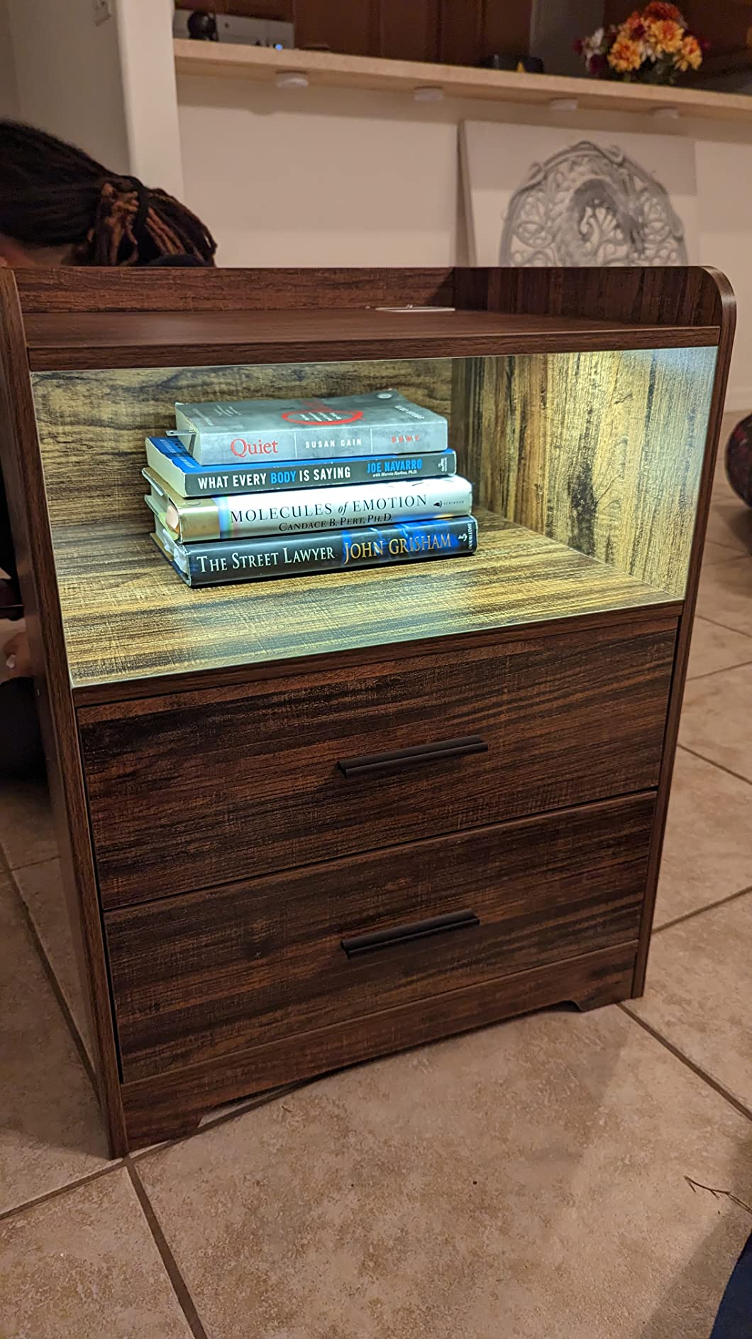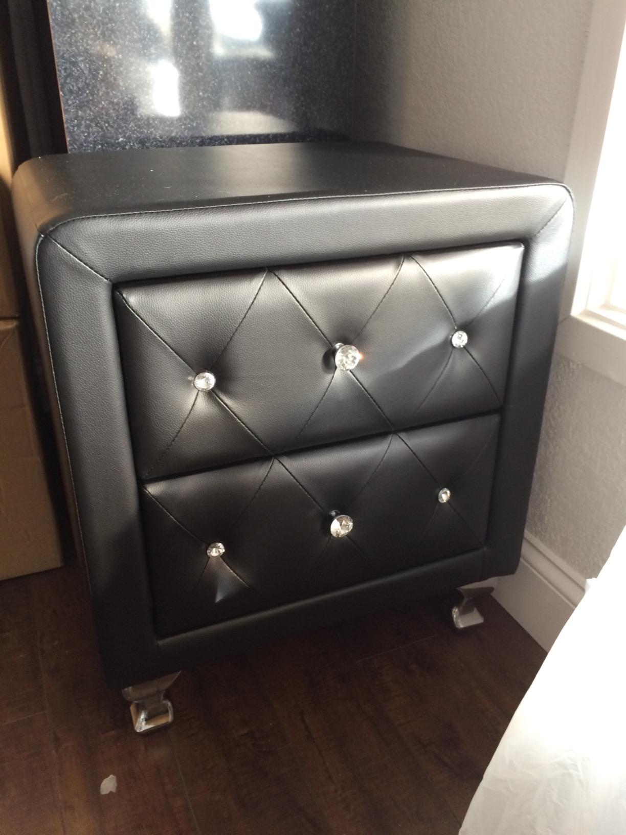 【Furniture】Black Nightstand with Charging Station, Night Stands with 2 Drawers, Smart Nightstand Bedside Table Led