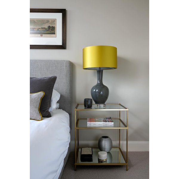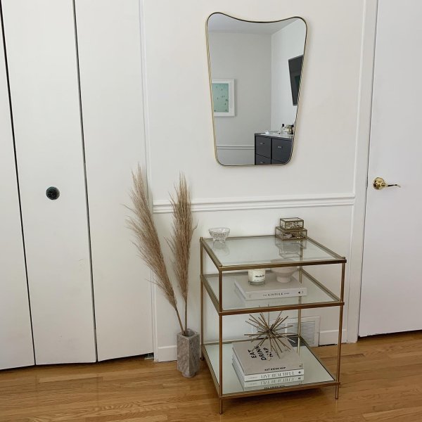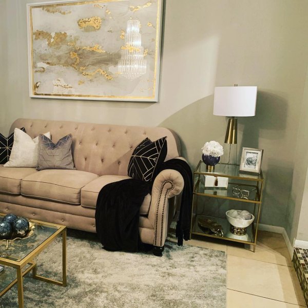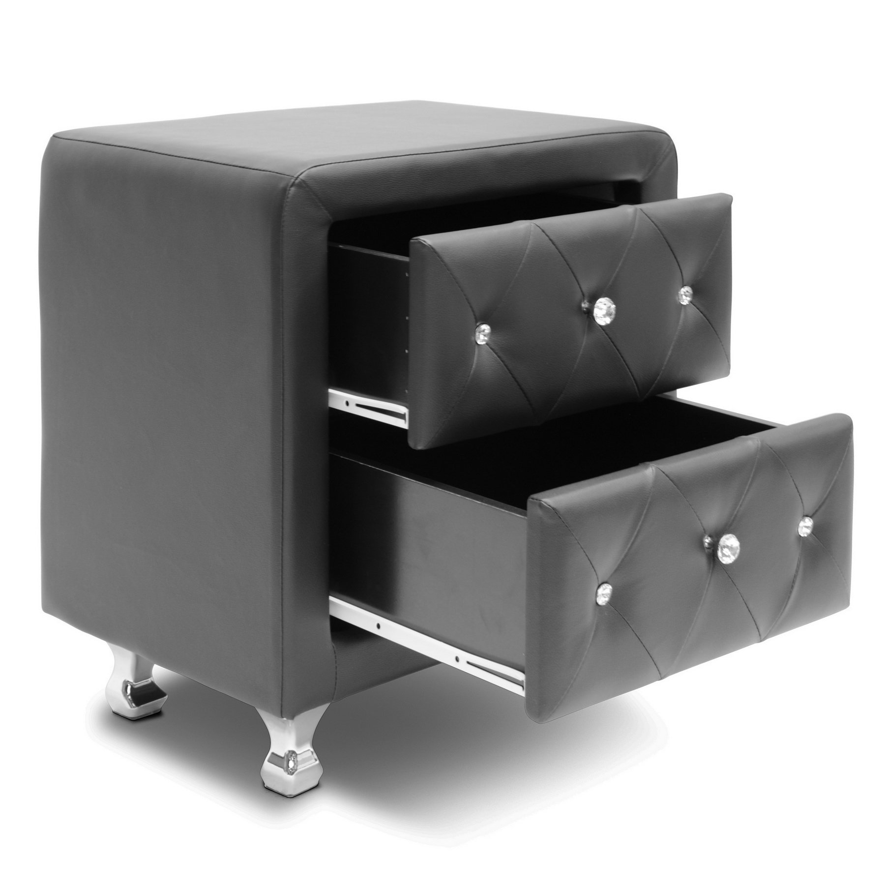 【Furniture】Nightstand with 2 Storage Drawers, Bedside Table with Gold Legs, End Table-Black