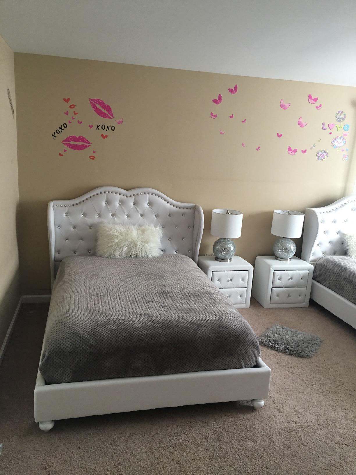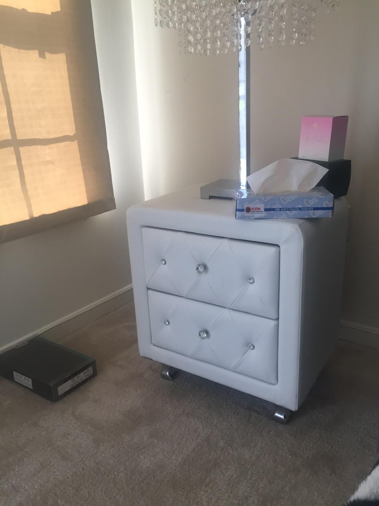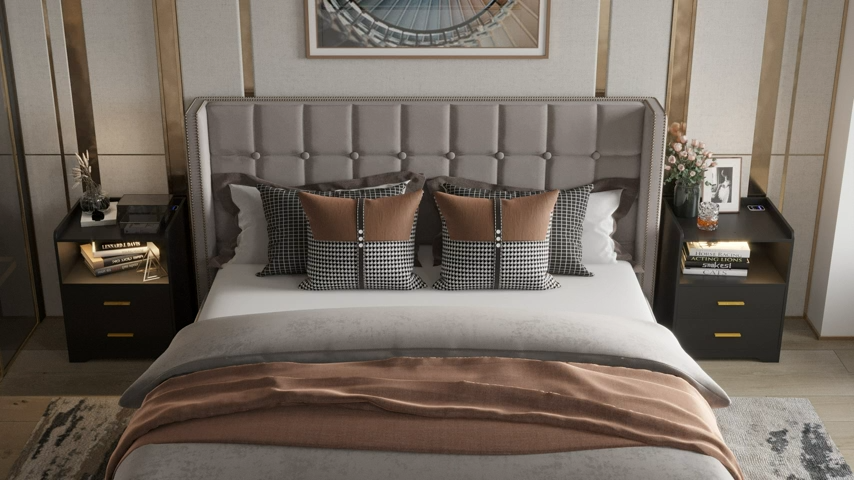 【Furniture】Modern Mid-Century Upholstered Night Stand with 2 Drawers for Bedroom Wood Bedside End Table