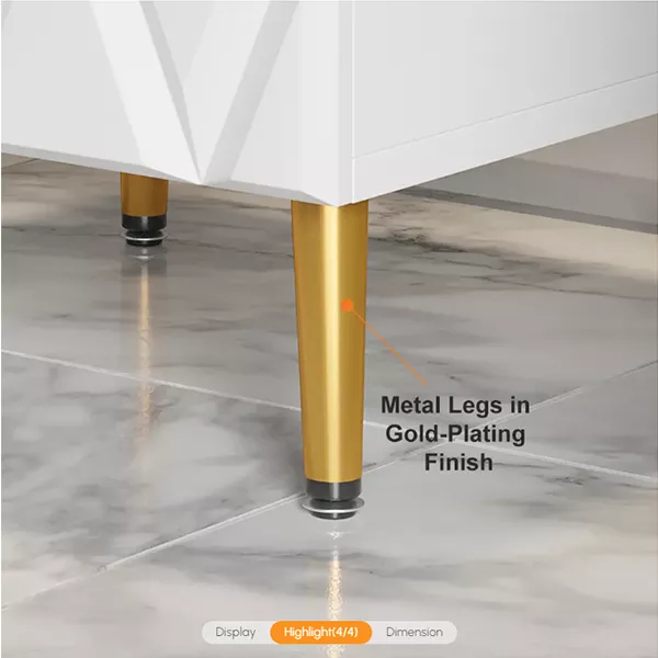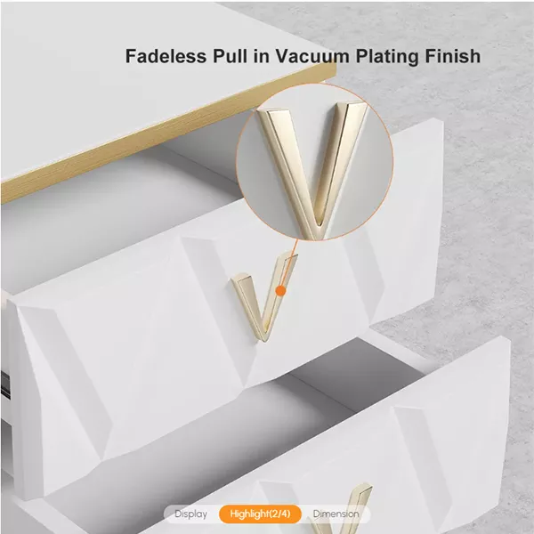 NORDIC WHITE NIGHTSTAND 3-DRAWER BEDSIDE TABLE V-SHAPED FACET & GOLD PULLS IN LARGE