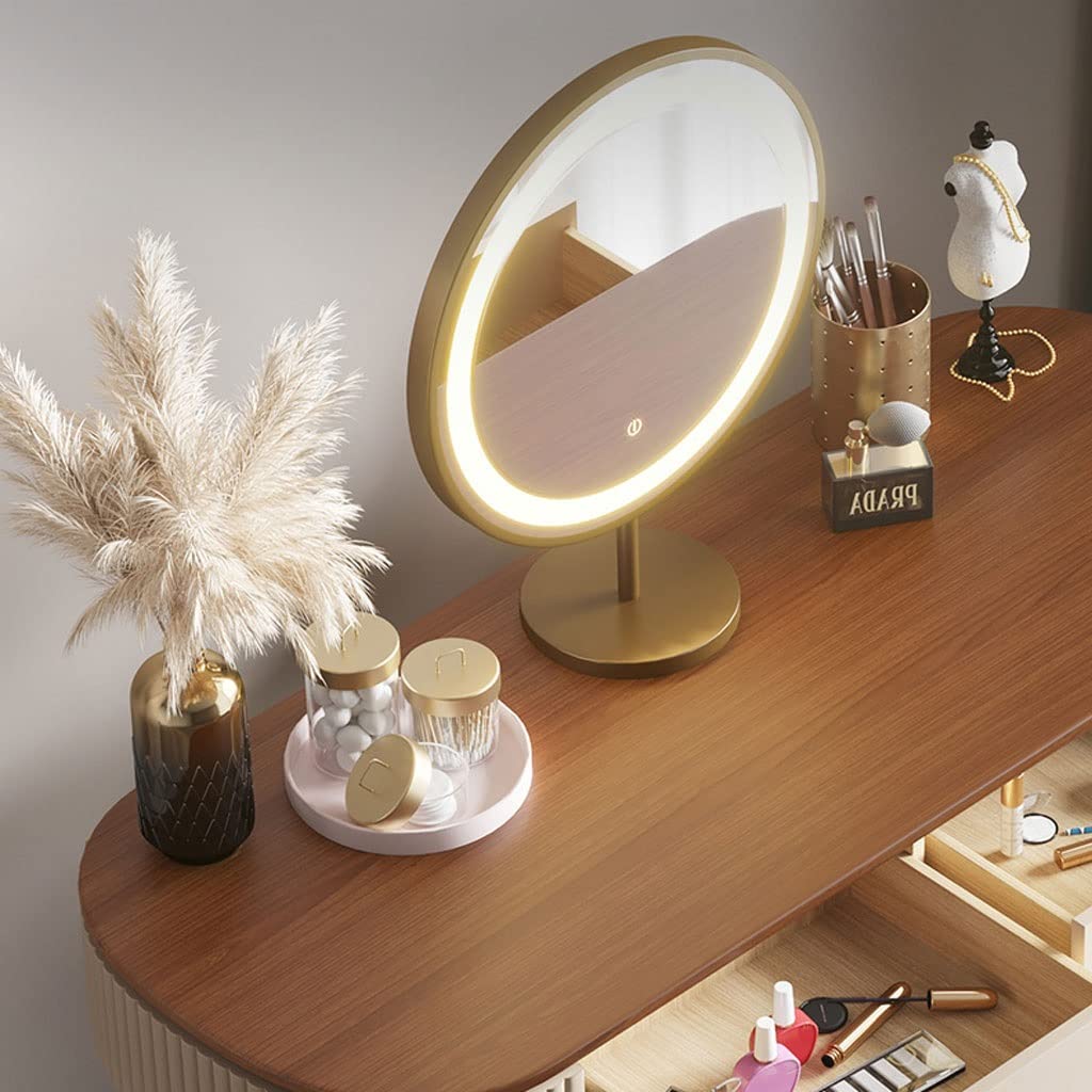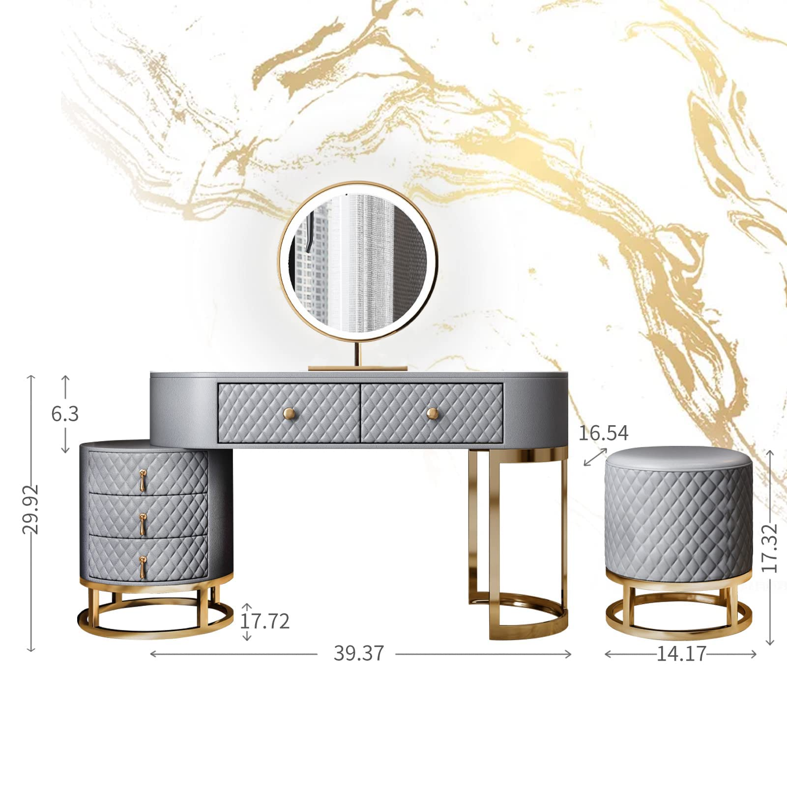 【Furniture】Marble Dresser Set with Illuminated LED Touch Screen Dimmable Round Mirror Makeup Cabinet