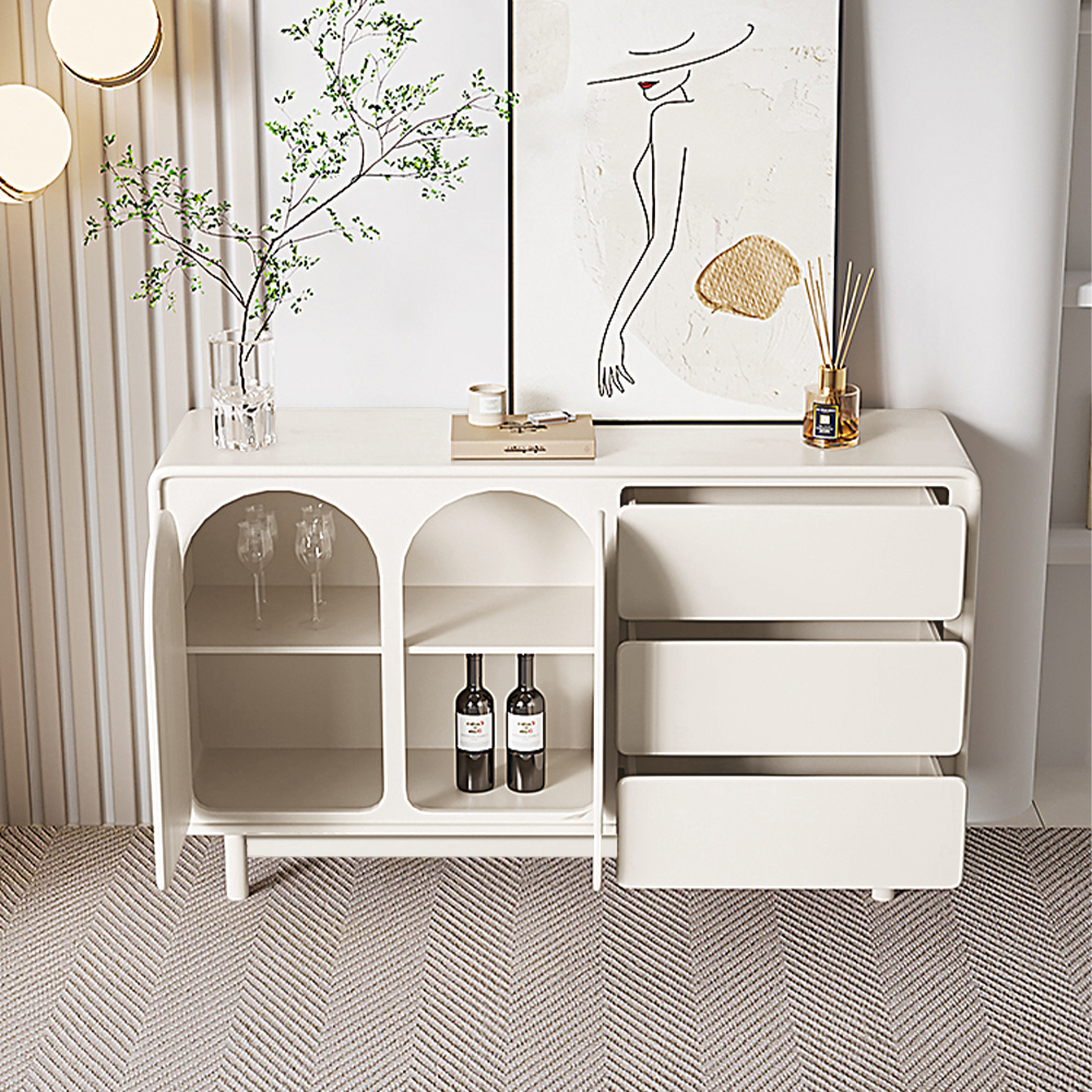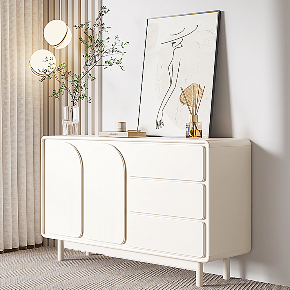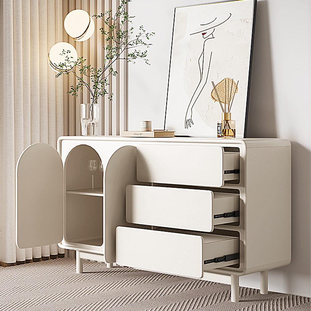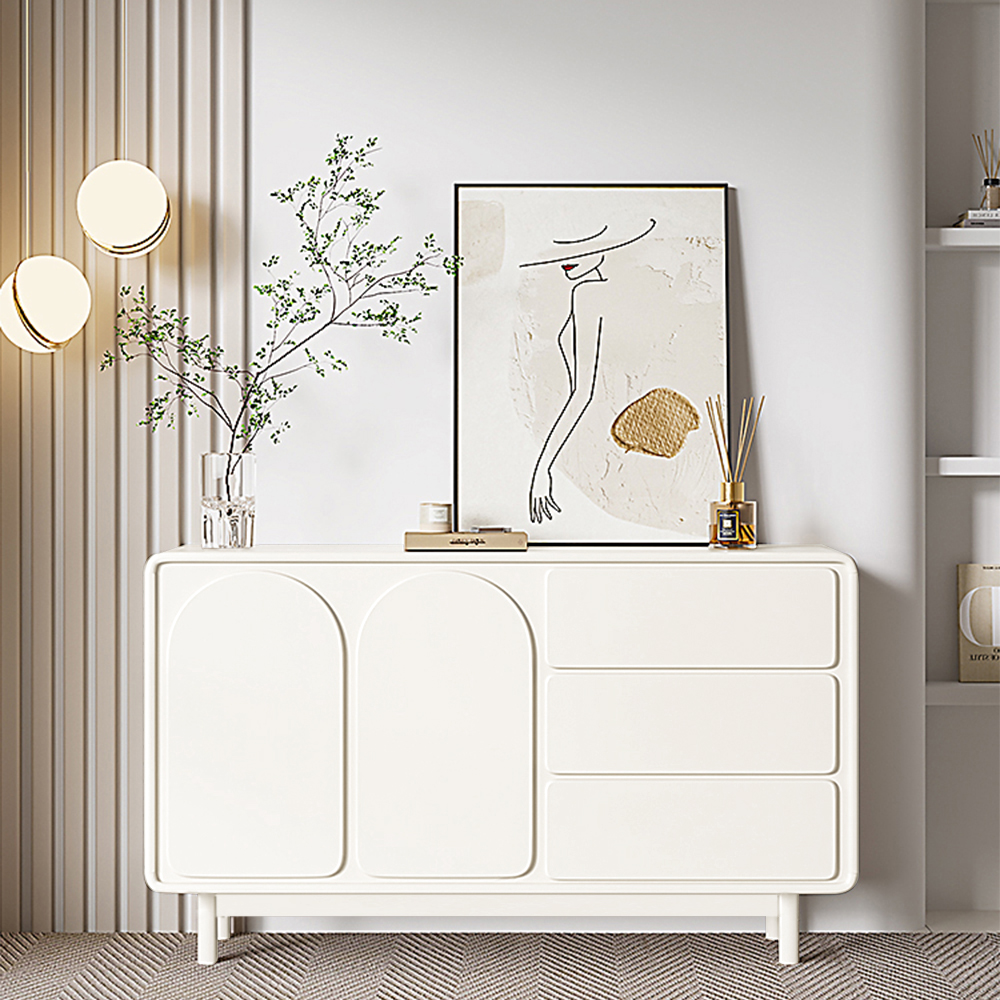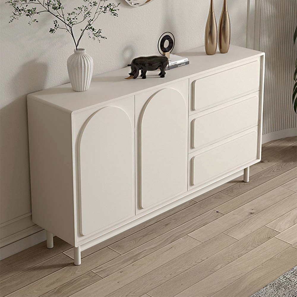55.12" Modern Sideboard Buffet with Double Doors 3 Drawers, MDF Frame Solid Wood Legs, Assemble Needed, Cream White