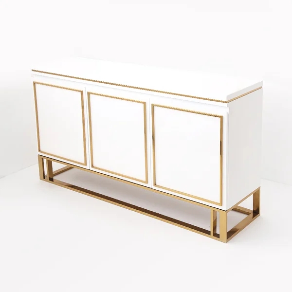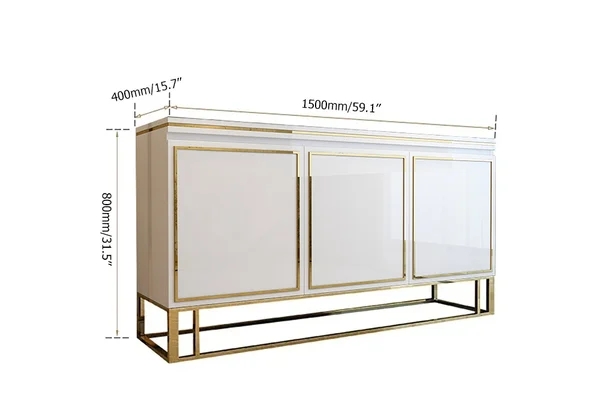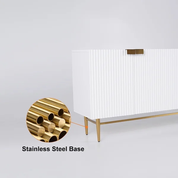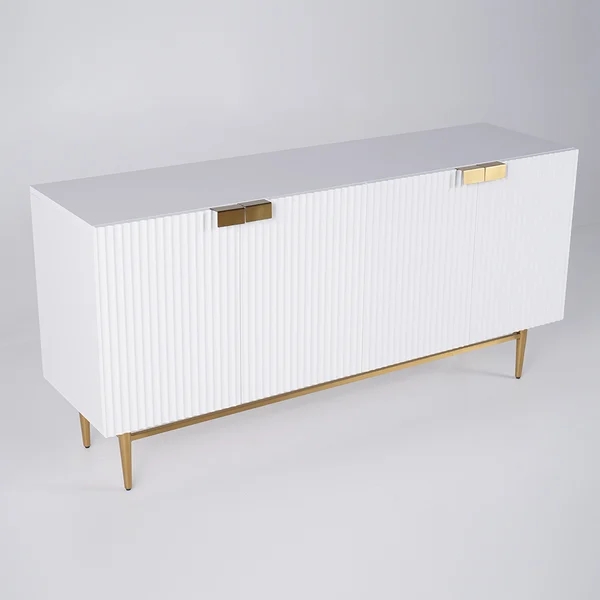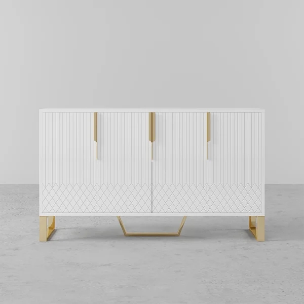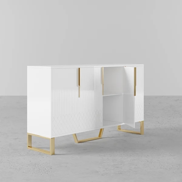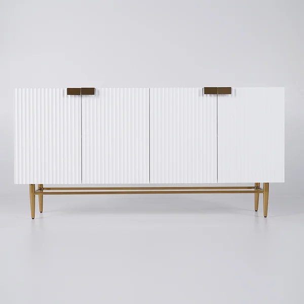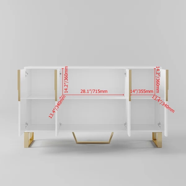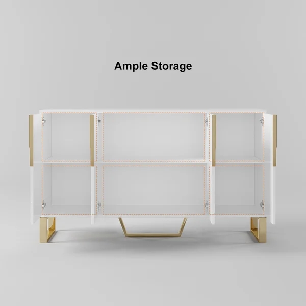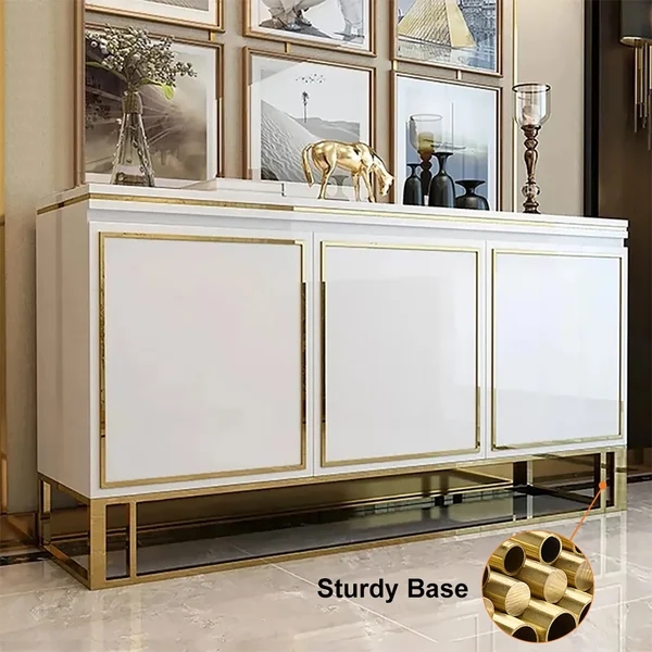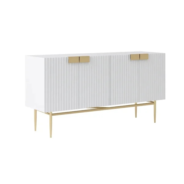 Medally 59" White Wood Sideboard Buffet Cabinet with Storage 3 Doors Gold Base