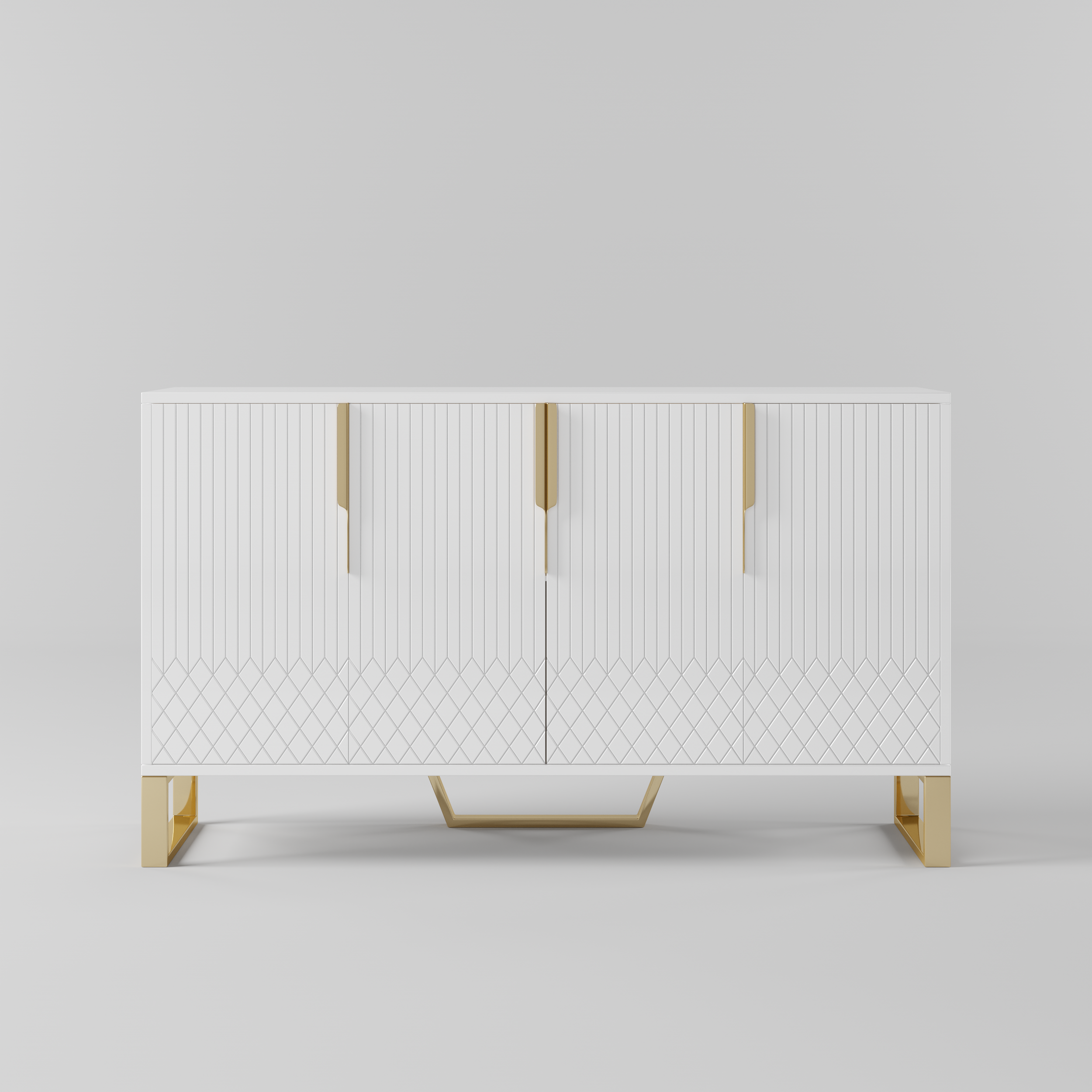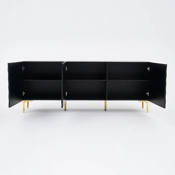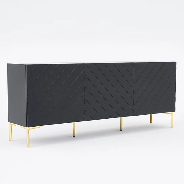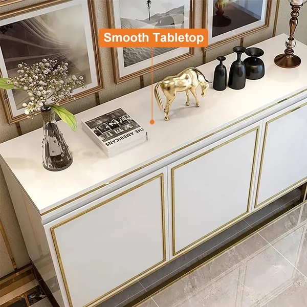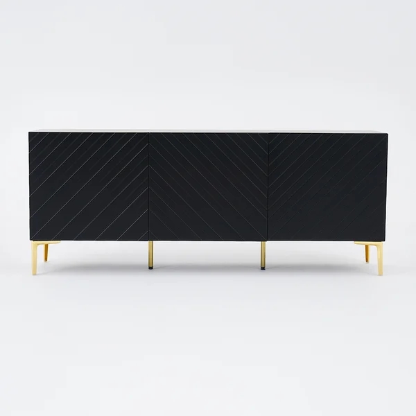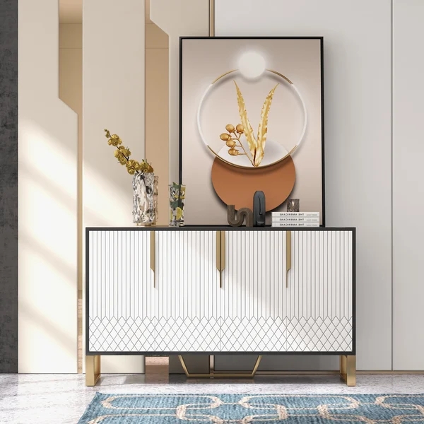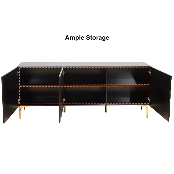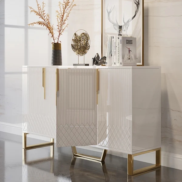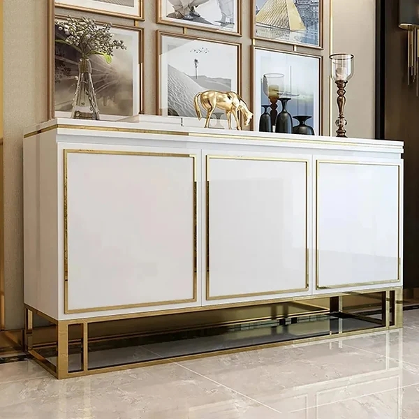 Medally 59" White Wood Sideboard Buffet Cabinet with Storage 3 Doors Gold Base