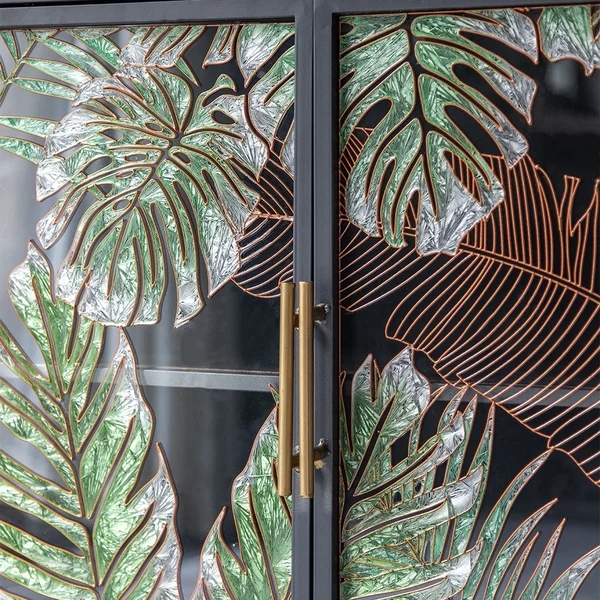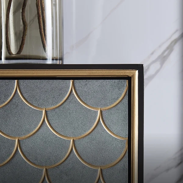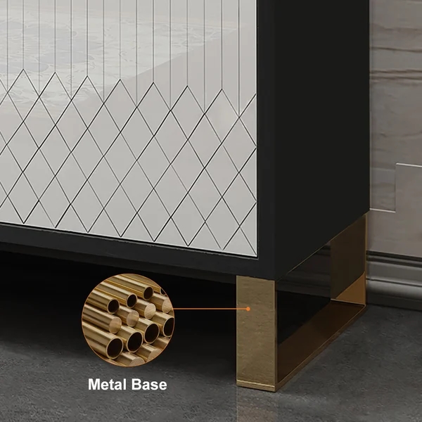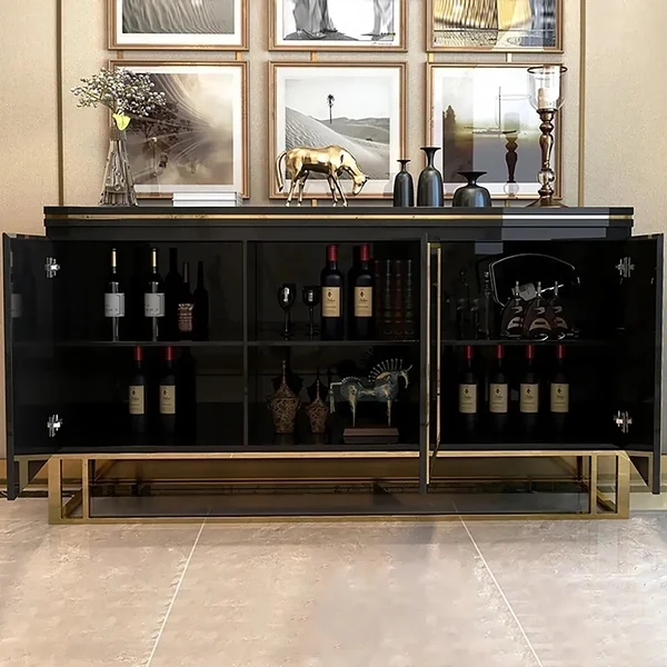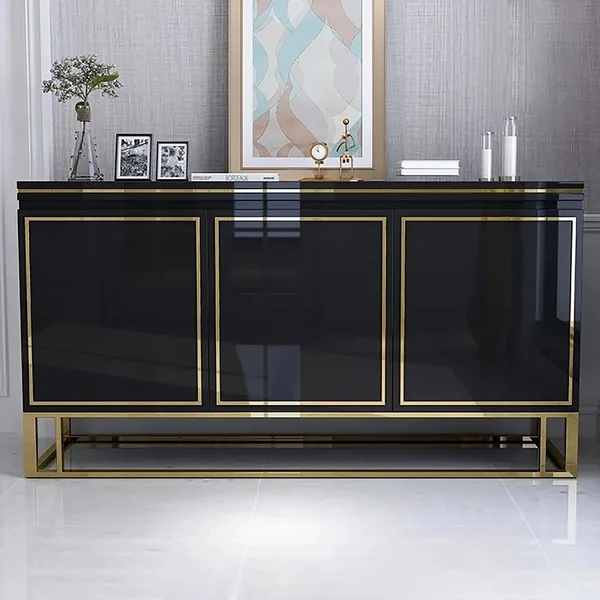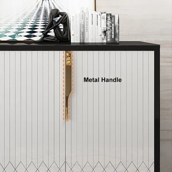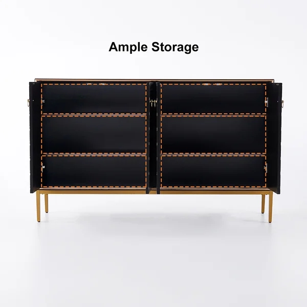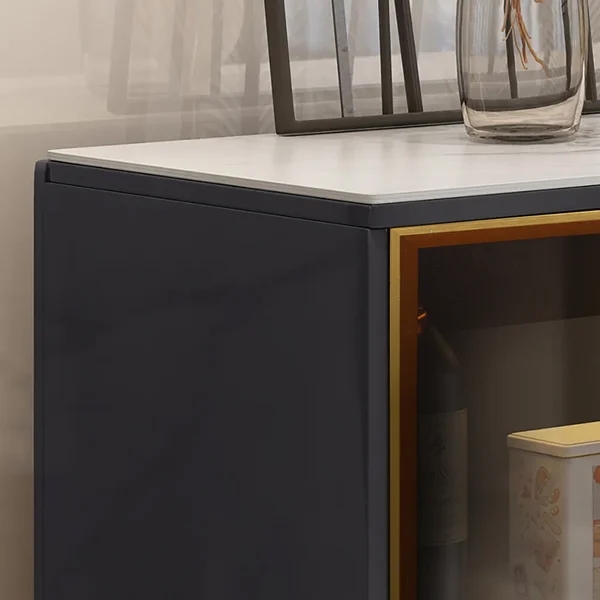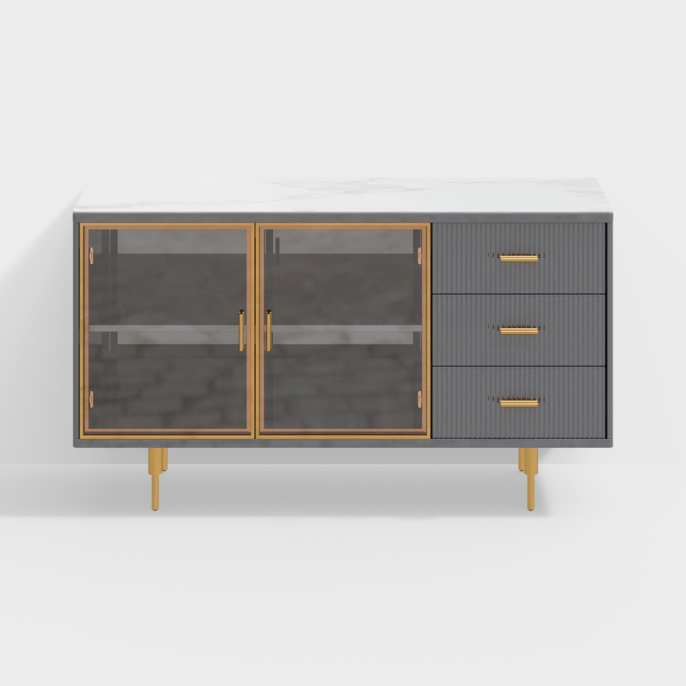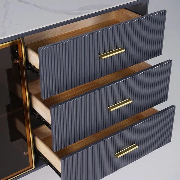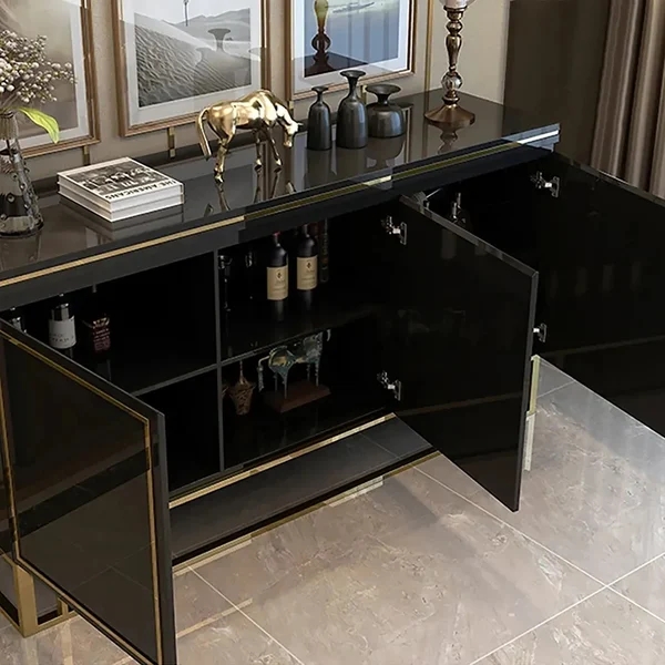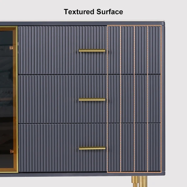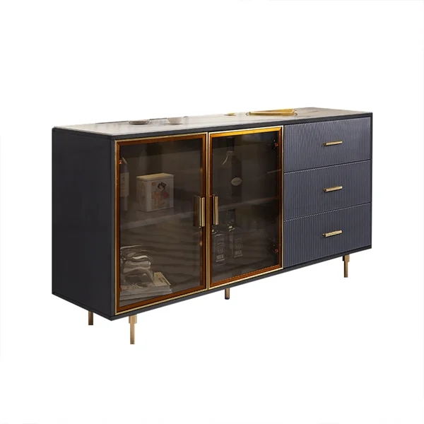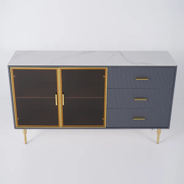 59" Modern Sideboard Sintered Stone Top Luxury Buffet Tempered Glass Doors in Large
