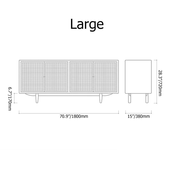 Prosy Mid-Century Modern Natural Sideboard with 3 Doors & 3 Shelves & 3 Drawers in Small