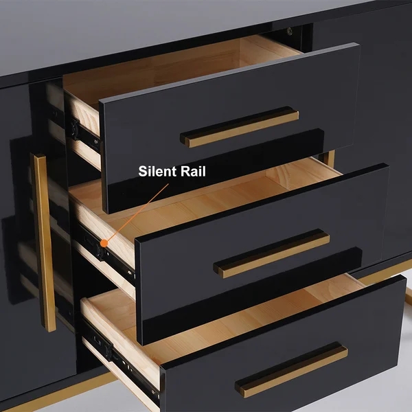 Stovf 59" Black Sideboard Buffet with Drawers Modern Wood Dining Room Sideboard Cabinet