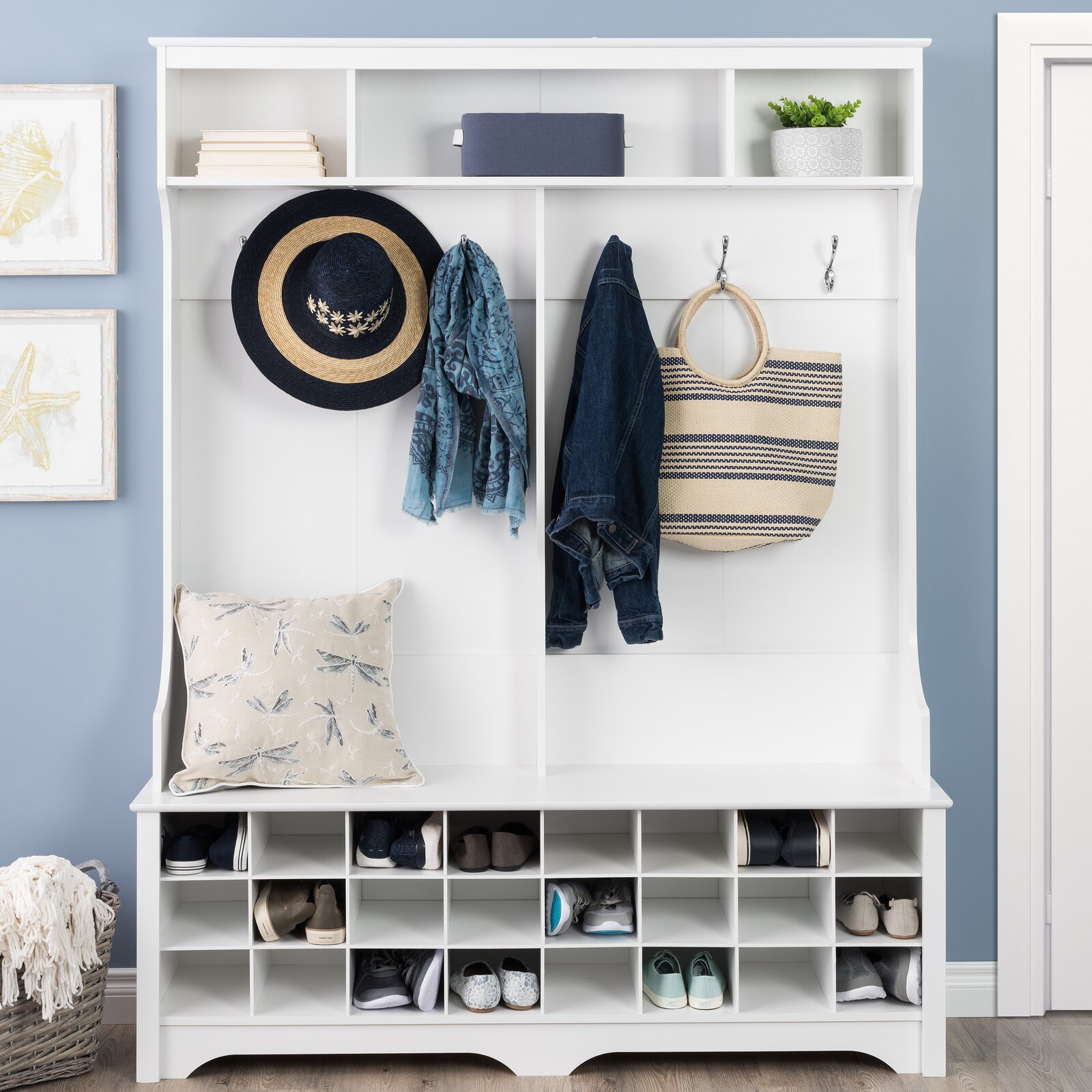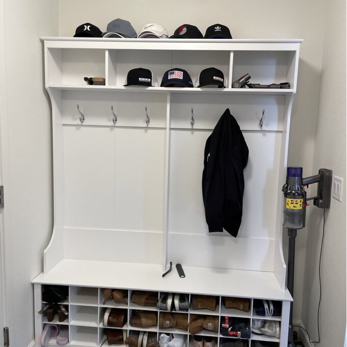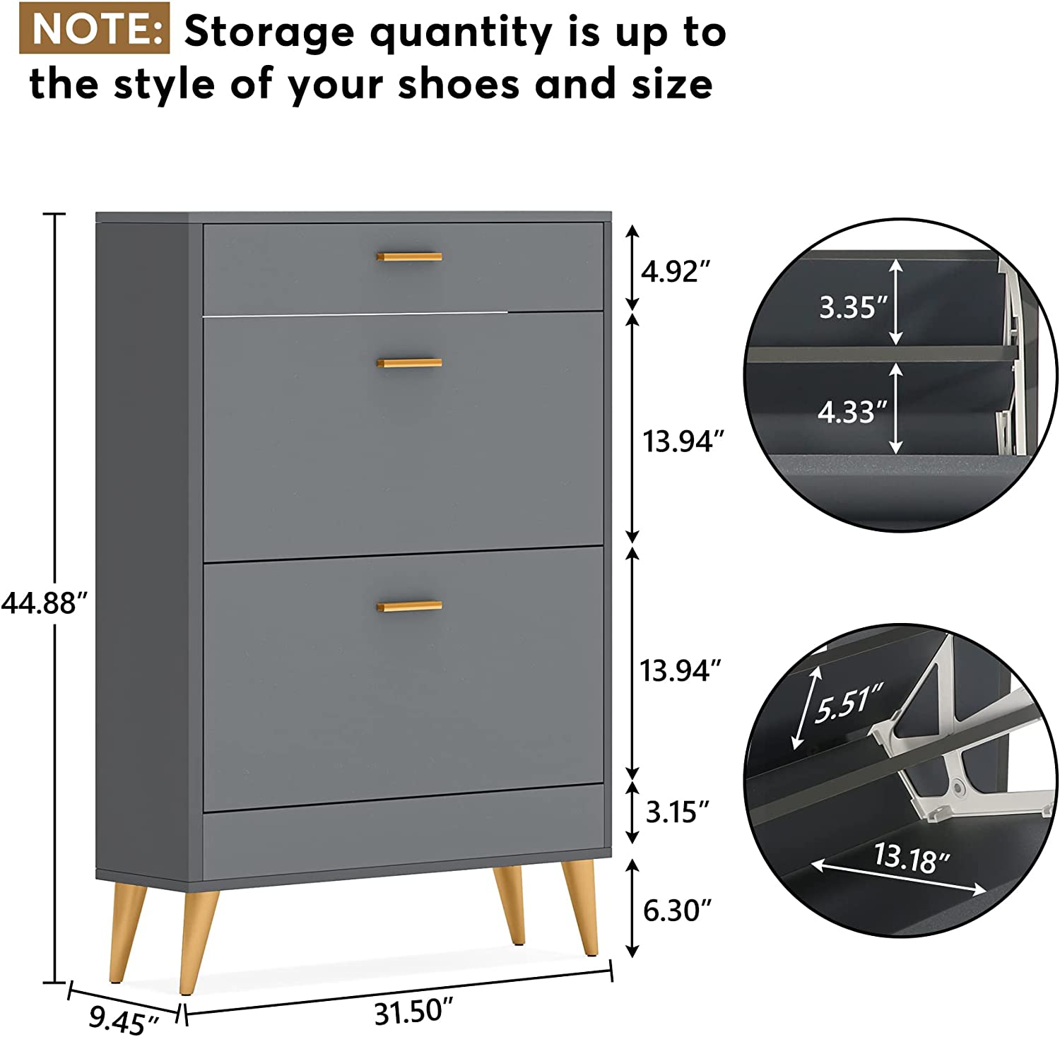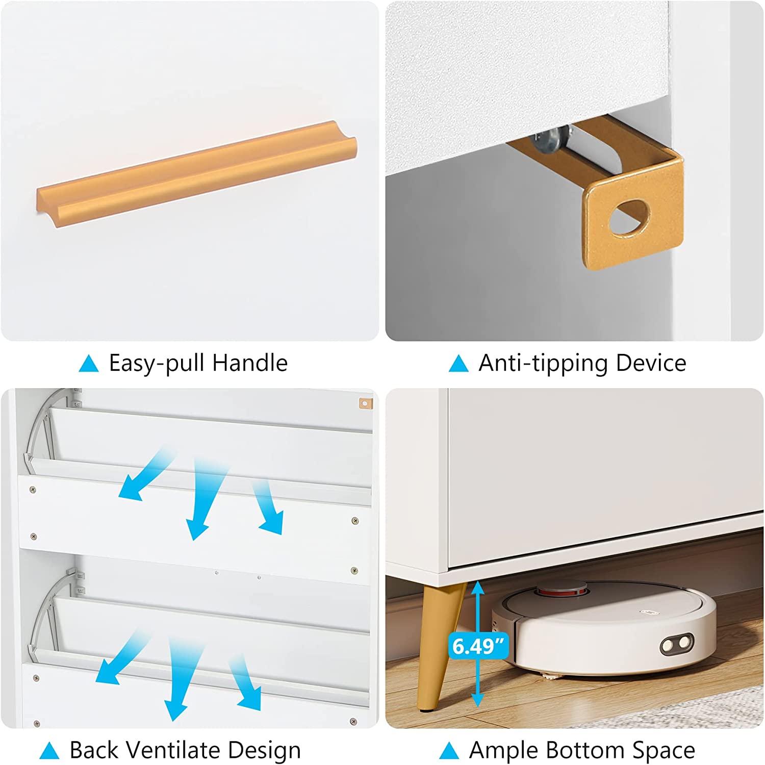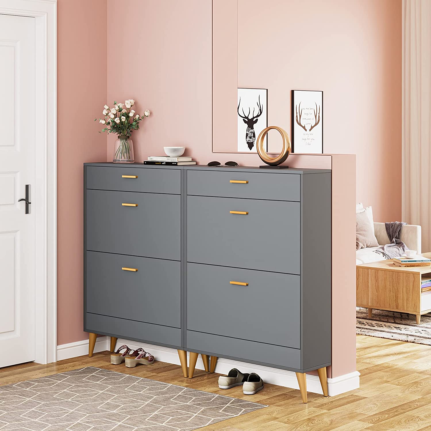Tribesigns Shoe Cabinet, Entryway White Slim Shoe Storage Cabinet, Modern 16 Pair Thin Shoe Rack Organizer with 2 Flip Drawers (White + Gold)