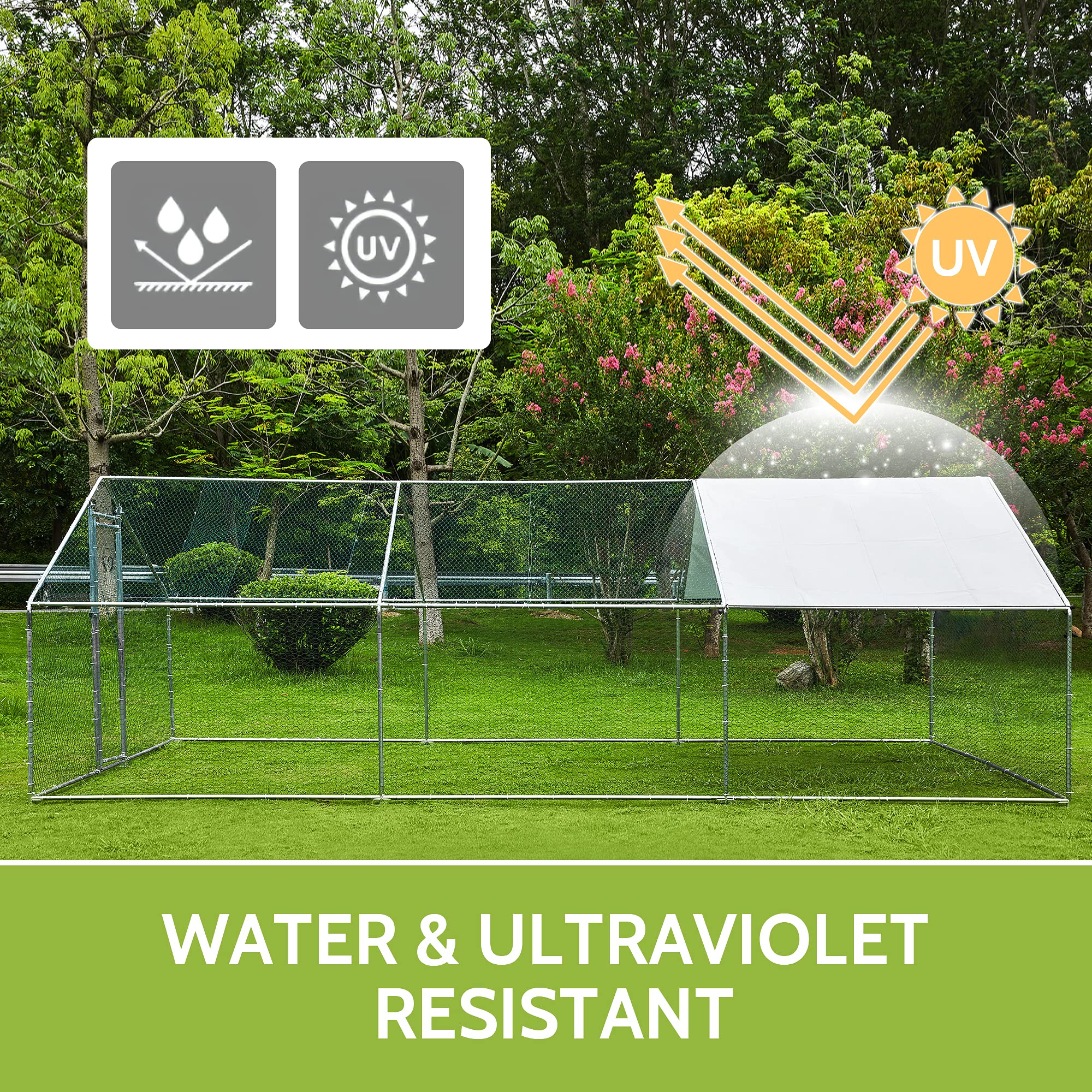 【Pet】Chicken Coop, 3mx4mLarge Metal Walk-in Poultry Cage Kennel with Waterproof Cover