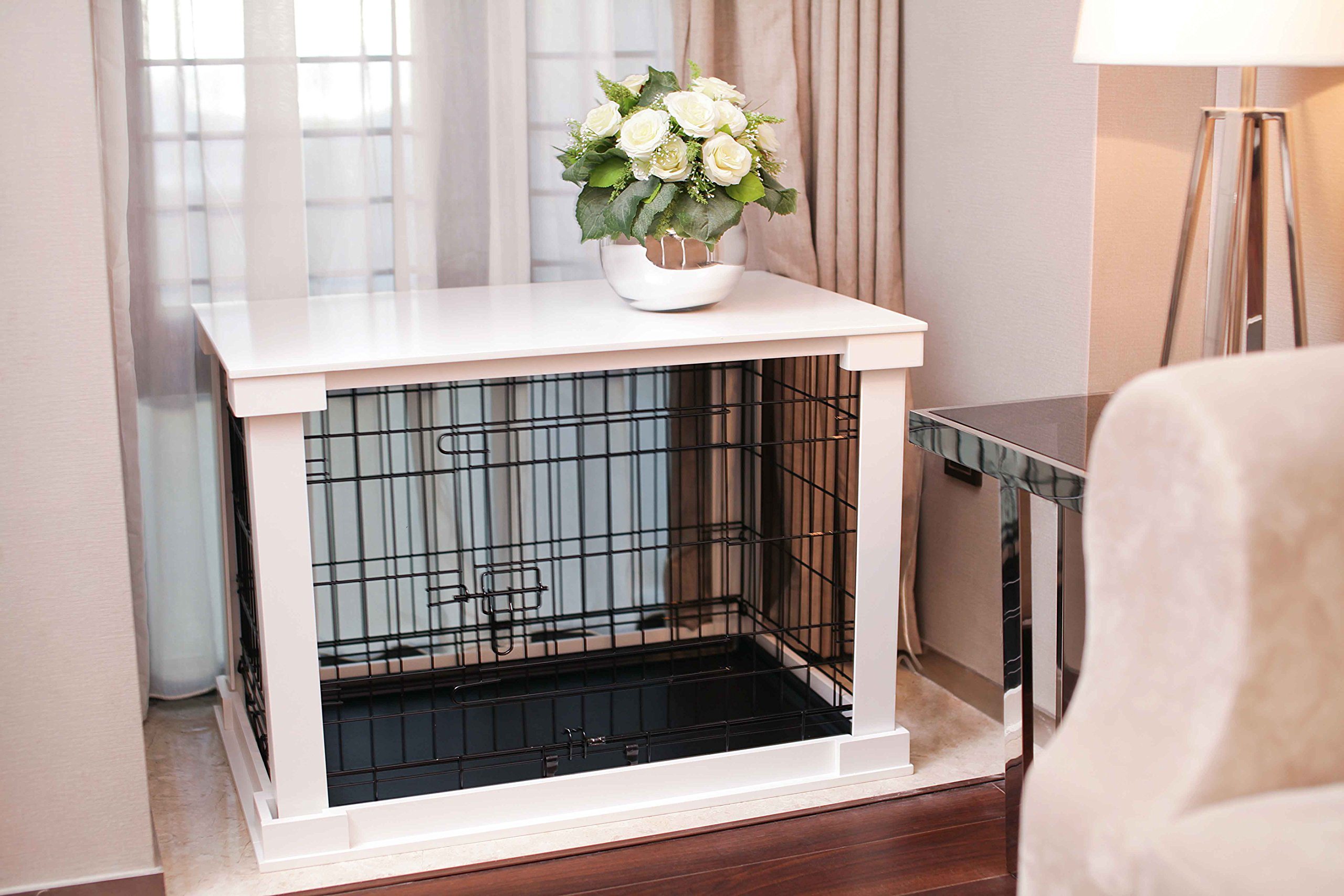 【Pet】Dog Crate Furniture with Cushion, XL Wooden Dog Crate with Double Doors, Dog Furniture