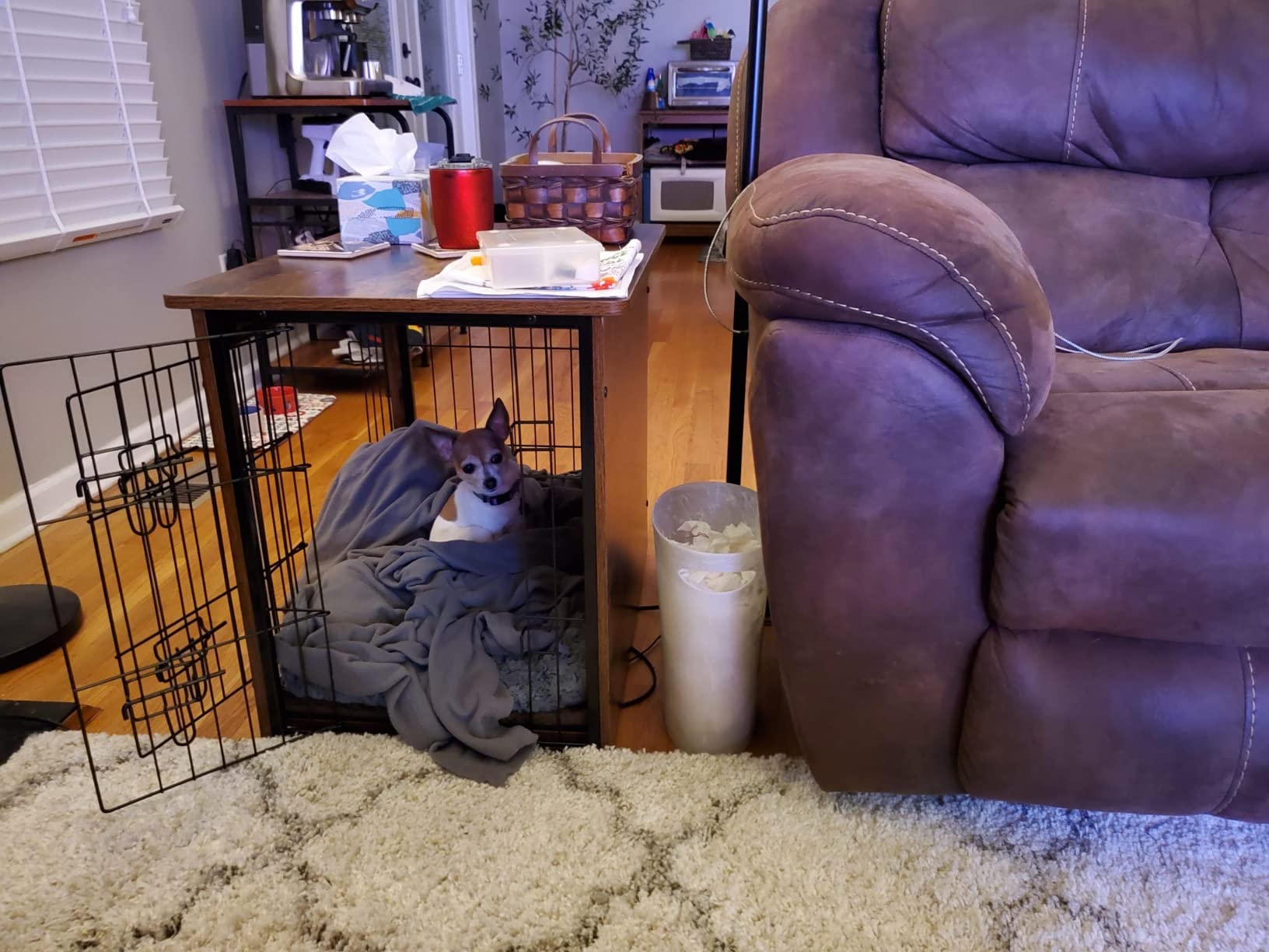 【Pet】Furniture Style Dog Crate with Cushion & Tray, Mesh Dog Kennels, End Table Dog House