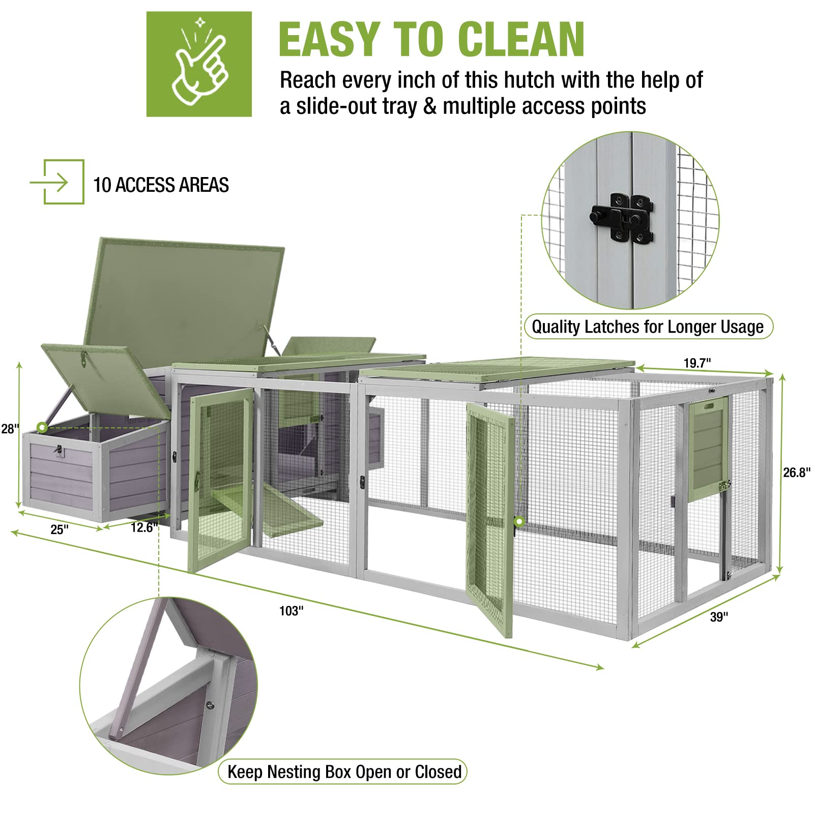 【Pet】103in Large Chicken Coop Outdoor Wooden Chicken House, Hen House Poultry Cage for 4-6 Hens