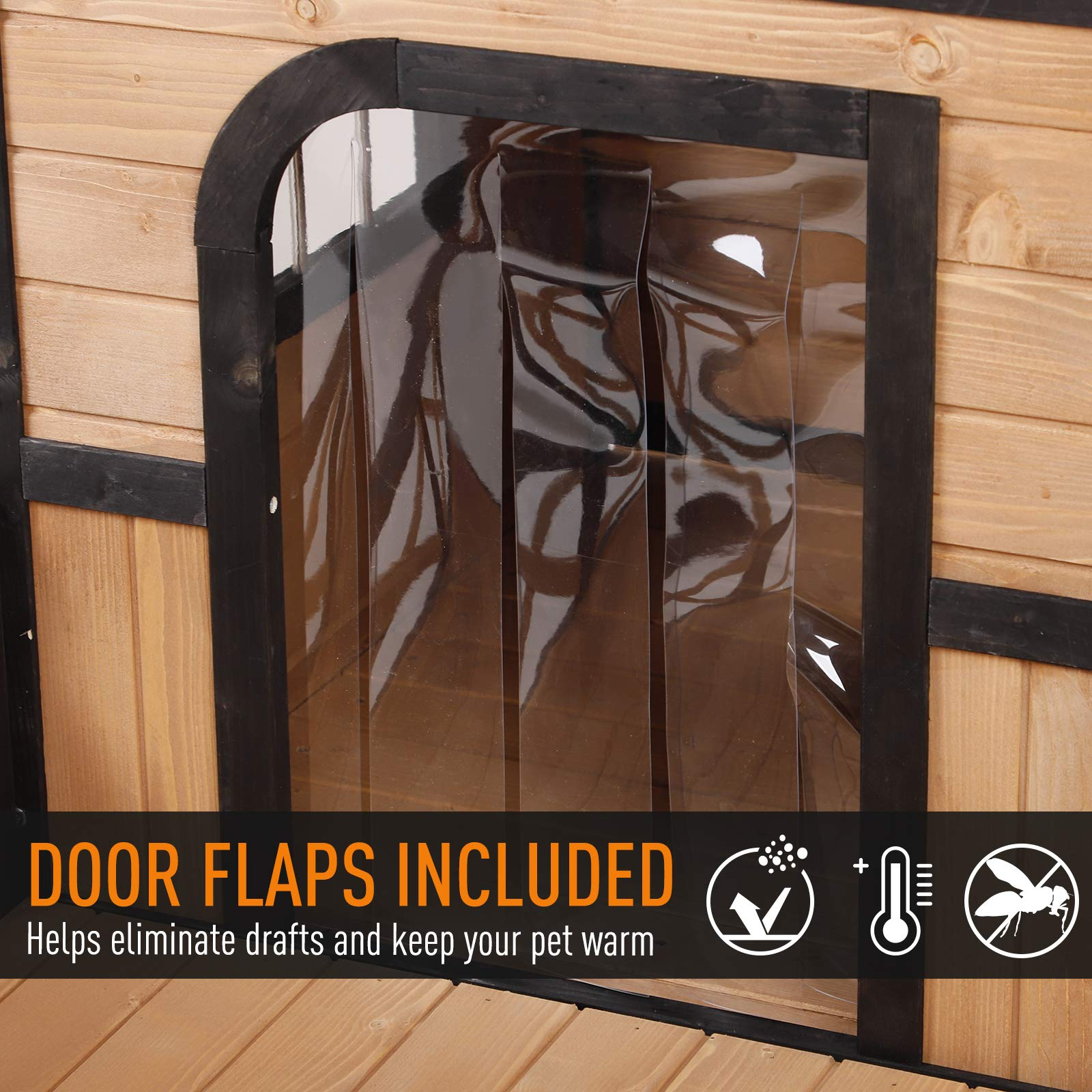 【Pet】59x64x39 Wood Large Dog House Cabin Style Elevated Pet Shelter wPorch Deck Natural