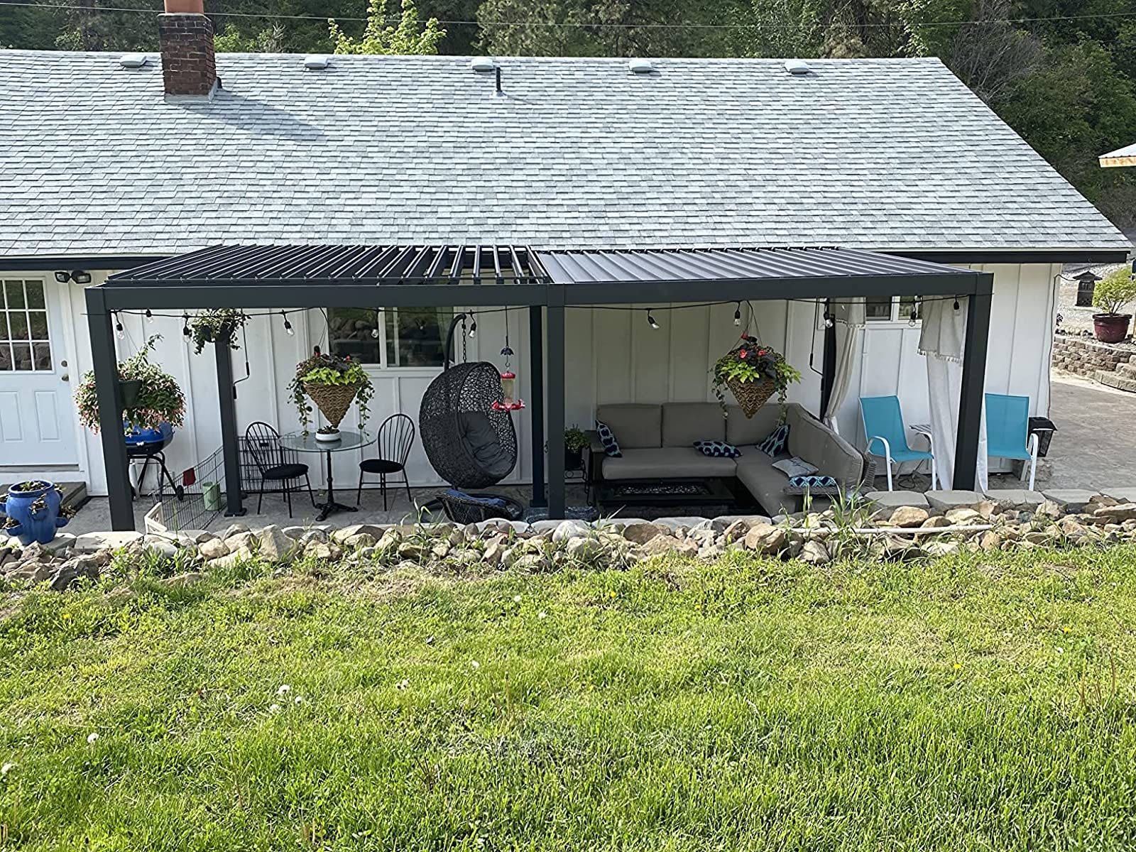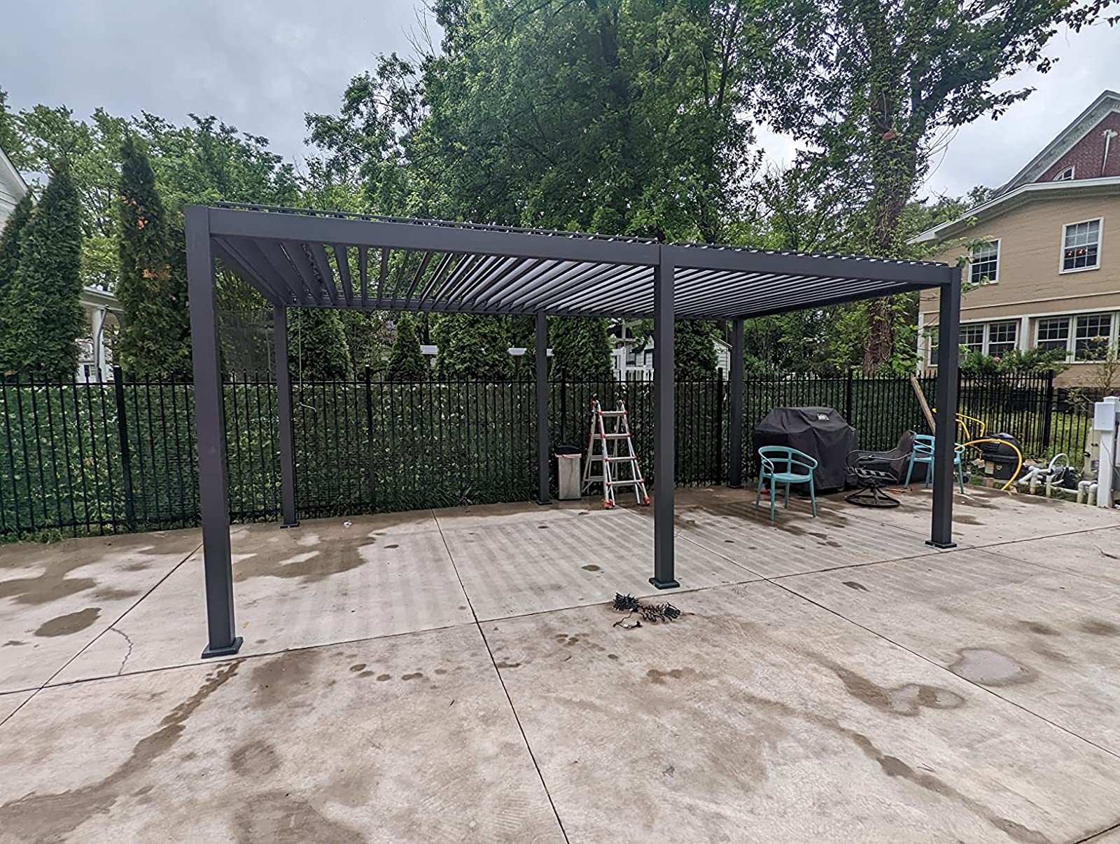 Premium Material&Sturdy Structure: Composed of engineering structure design, powder coated aluminum frame and steel louvers, the pergola is sturdy, rust&corrosion resistant that last for years of usage. The wind resistance is up to 65 mph