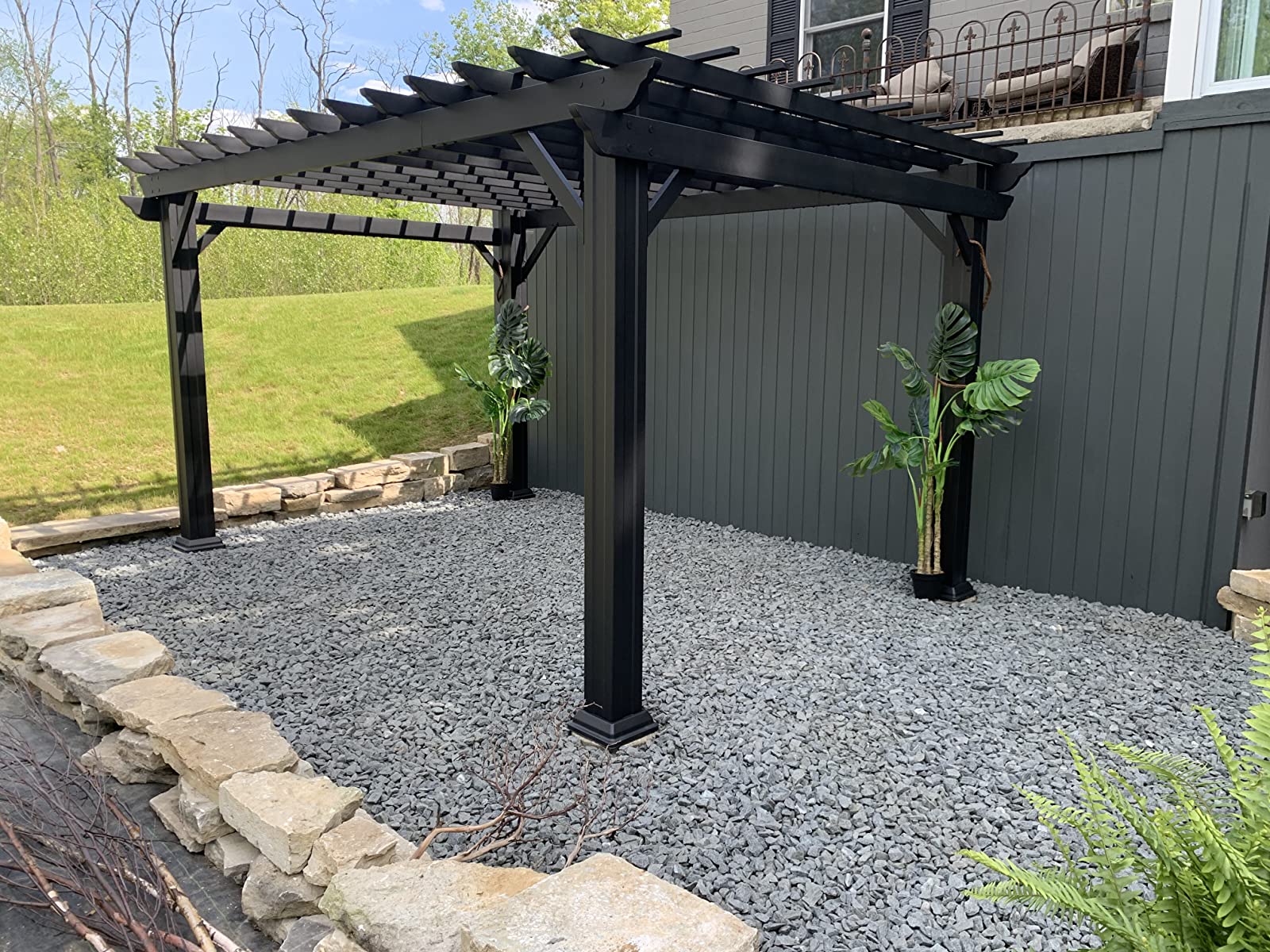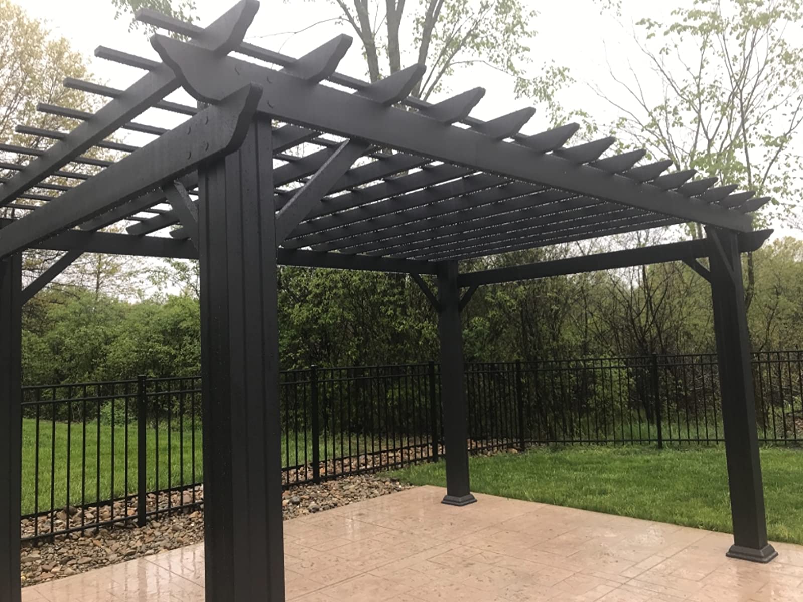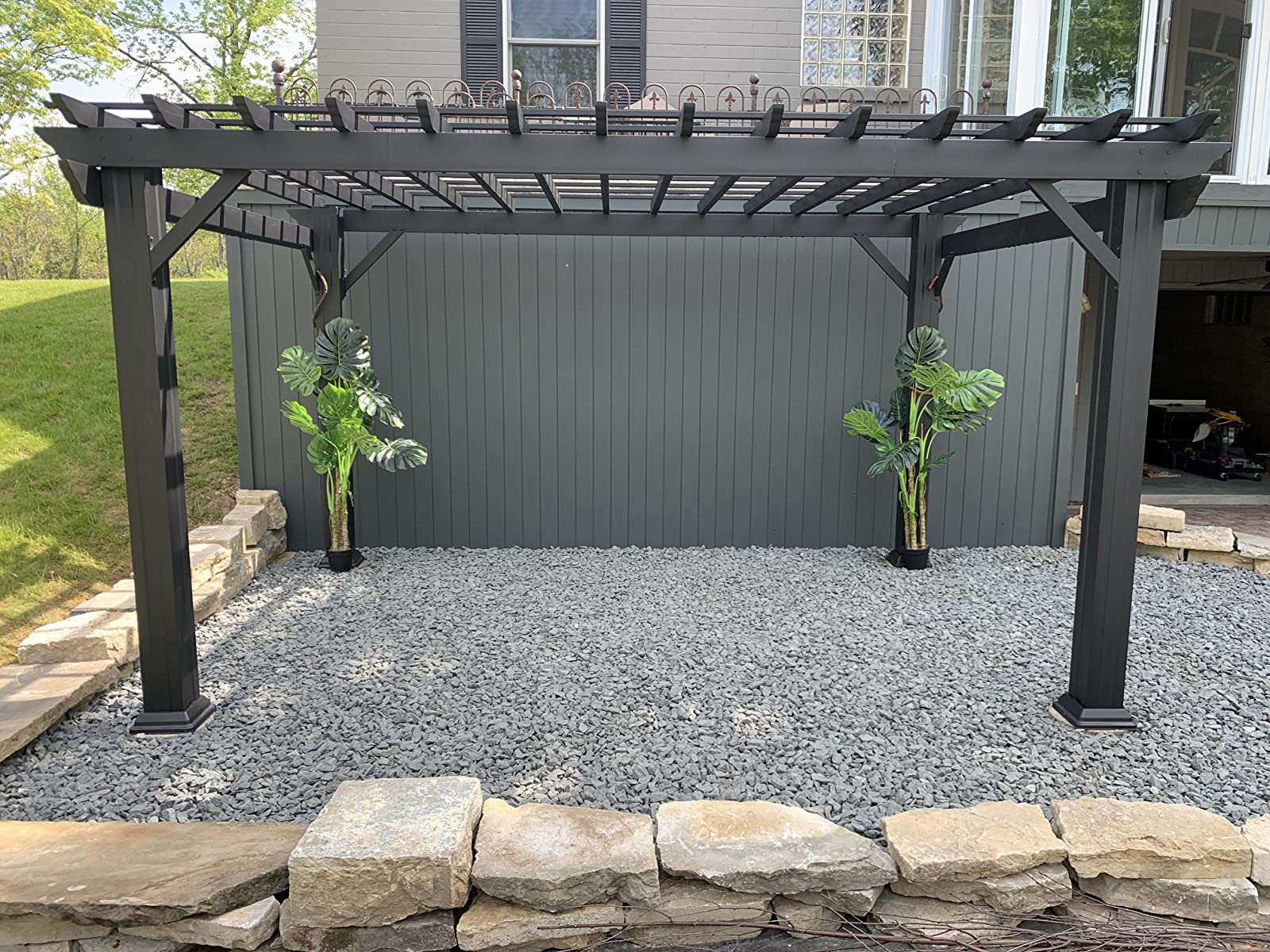 We bought this pergola as a focal point to a new paved patio in the middle of our backyard. We hired a landscape architect and landscaping company to completely redo our backyard. We ran out of budget to have a pergola built so bought this pergola instead. The company installed it for us and the crew said it was easy and components were high quality. The architect was very impressed and said she would recommend to other clients. It overwintered great. We wiped some dust off and it still looks brand new. Very happy.