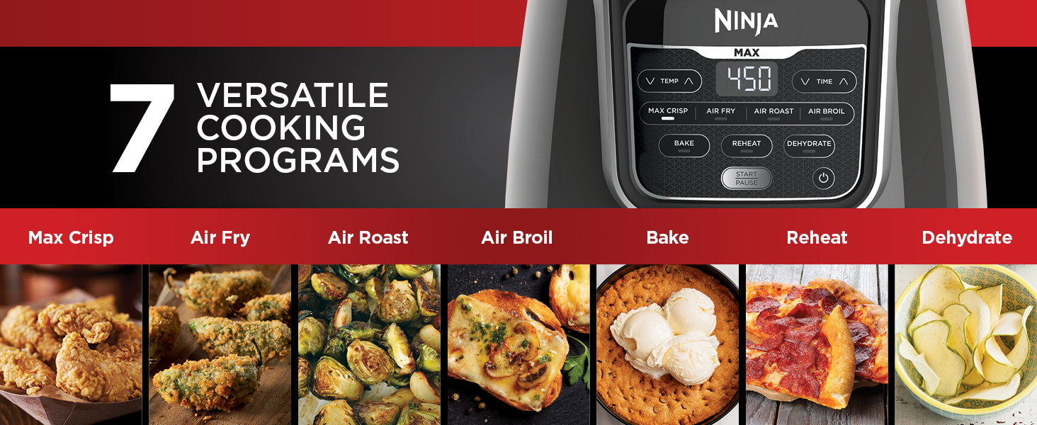 • 7-IN-1 FUNCTIONALITY: Includes 7 versatile cooking programs: Max Crisp, Air Fry, Air Roast, Air Broil, Bake, Reheat & Dehydrate.