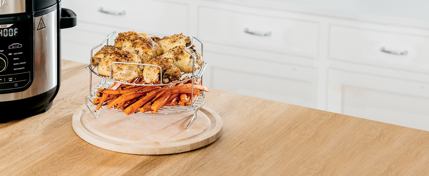 TENDERCRISP TECHNOLOGY: Quickly pressure cook ingredients to lock in juices, then give them a crispy, golden air-fryer finish.