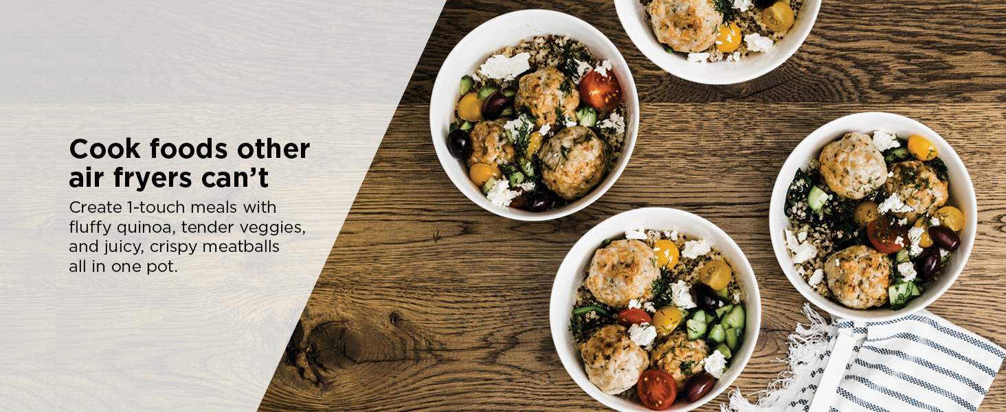 - RAPID COOKING SYSTEM: Quickly create moisture with steam while caramelizing and crisping with air fry technology at the same time in one pot when in Rapid Cooker mode to get restaurant-worthy results.