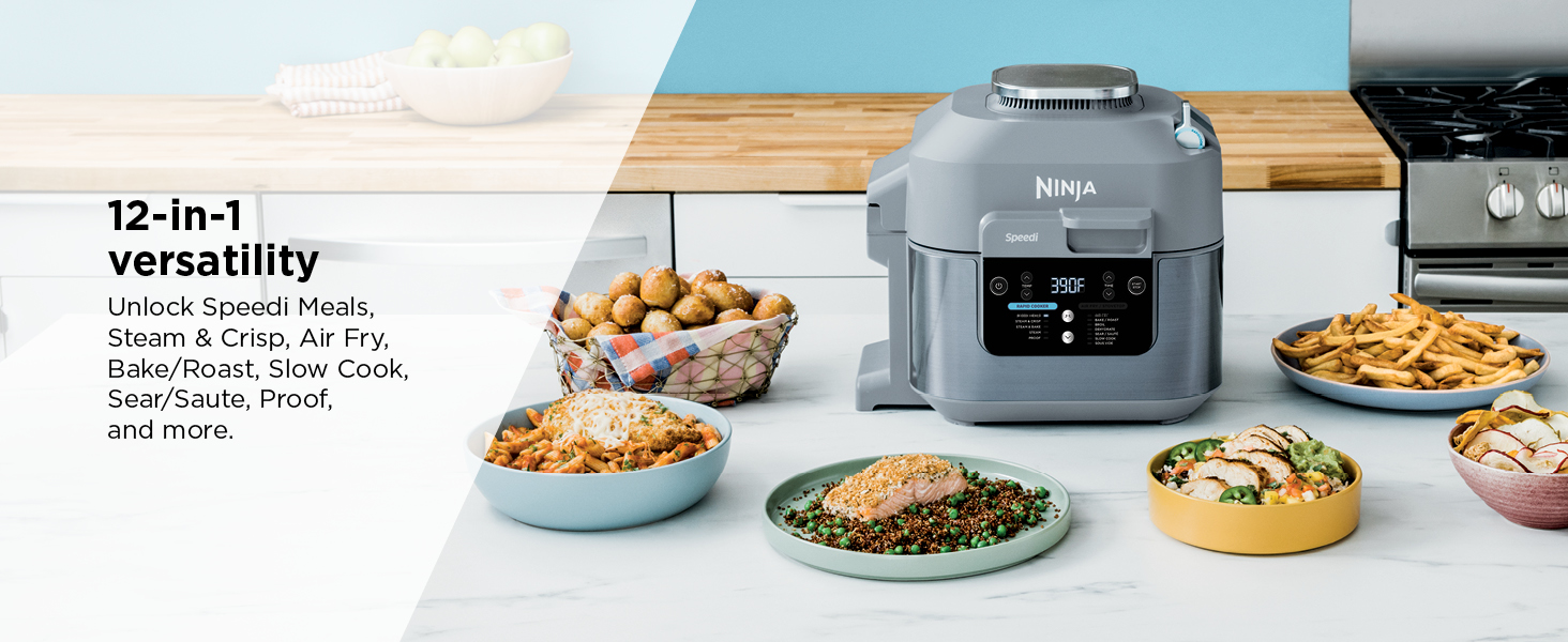 - 12-IN-1 FUNCTIONALITY: Choose from Speedi Meals, Steam & Crisp, Steam & Bake, Steam, or Proof in Rapid Cooker mode and unlock Air Fry, Bake/Roast, Air Broil, Dehydrate, Sear & Sauté, Slow Cook, and Sous Vide functions in Air Fry mode.
