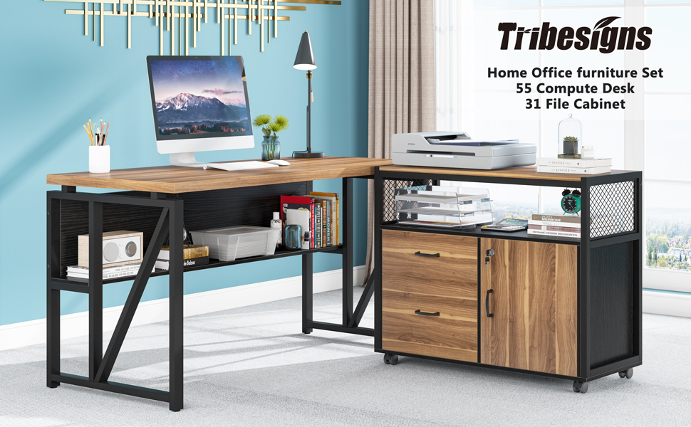 - 【Freestanding 2 piece Home Offices Furniture Set】: 55 inches computer desk and 32 inch filing cabinet, you will love the versatility of having 2 pieces that can be put together for an l-shaped desk to extend your workspace or separate for a different look.
