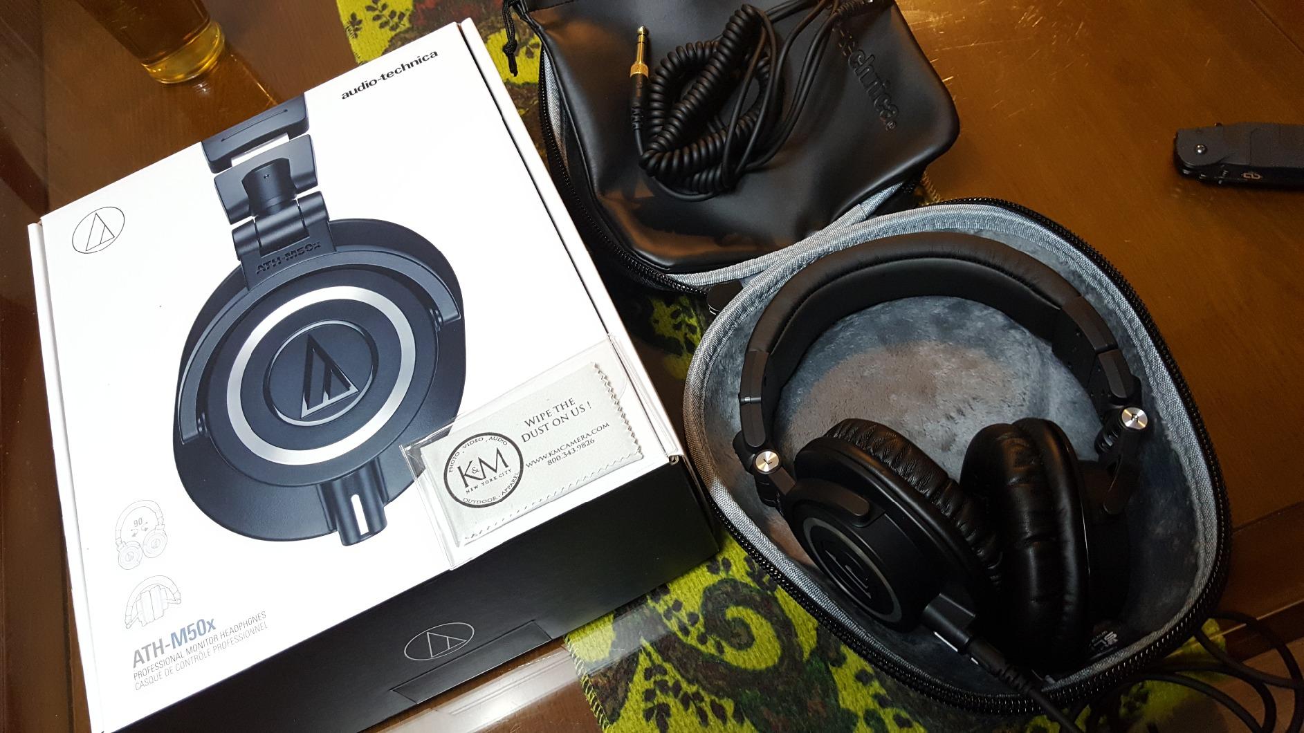 - INCLUDES - Audio-Technica ATH-M50X Professional Studio Monitor Headphones, Black, Professional Grade, Critically Acclaimed, with Detachable Cable; 1/4" Screw-On Adapter; Carrying Pouch. Slappa Full-Sized HardBody Pro Headphone Case